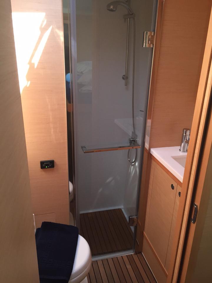 | Outside | Biminitop, Cockpitdusche, Cockpittisch, elektr. Ankerwinsch, elektr. Großwinsch, Gangway, Sprayhood, Teak im Cockpit |