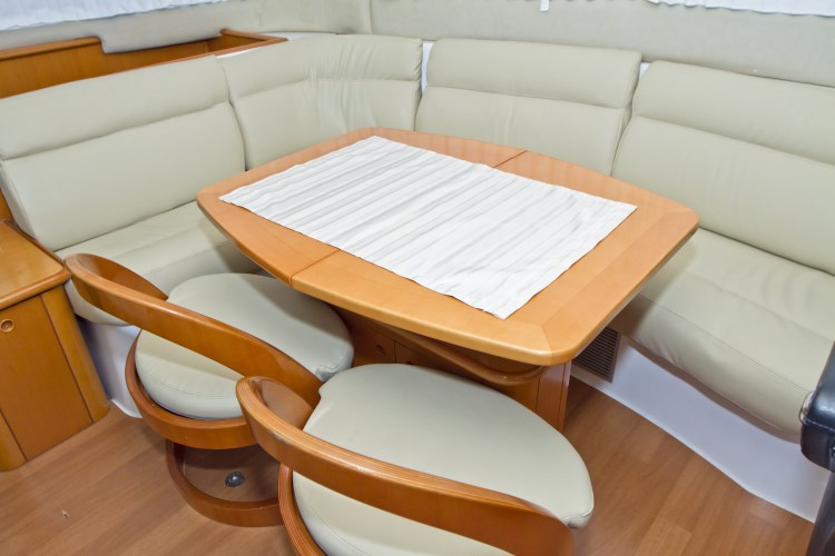 | Outside | 220 V-Landanschluss, Anker mit Kette, Badeleiter, Badeplattform, Biminitop, Cockpitdusche, Cockpittisch, elektr. Ankerwinsch, Fender, Festmacherleinen, Flybridge, hydraul. Gangway, Sonnendeck, Teak auf Flybridge, Teak im Cockpit |