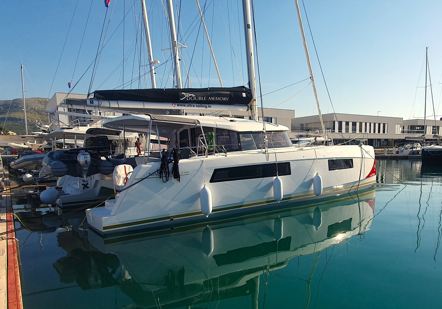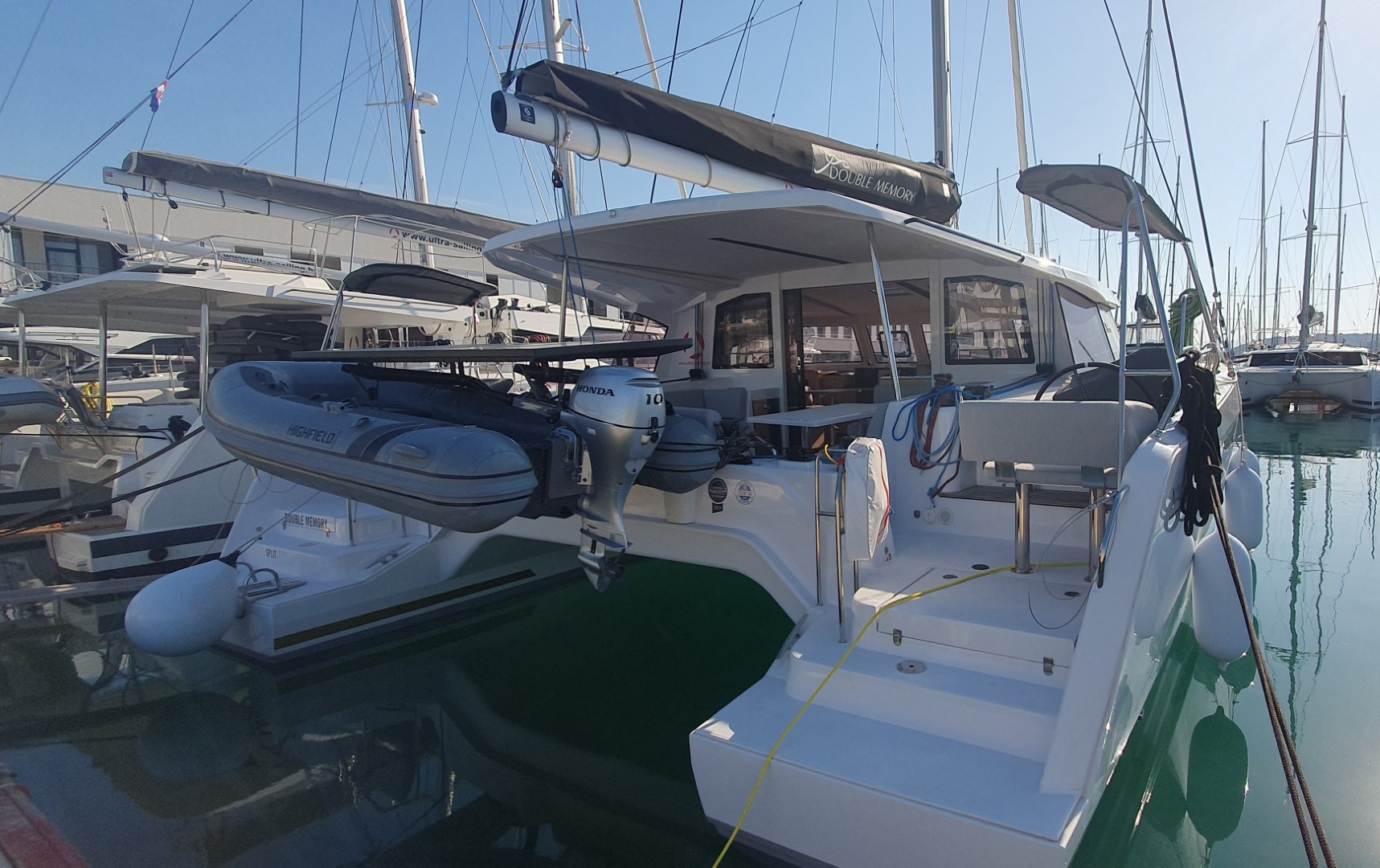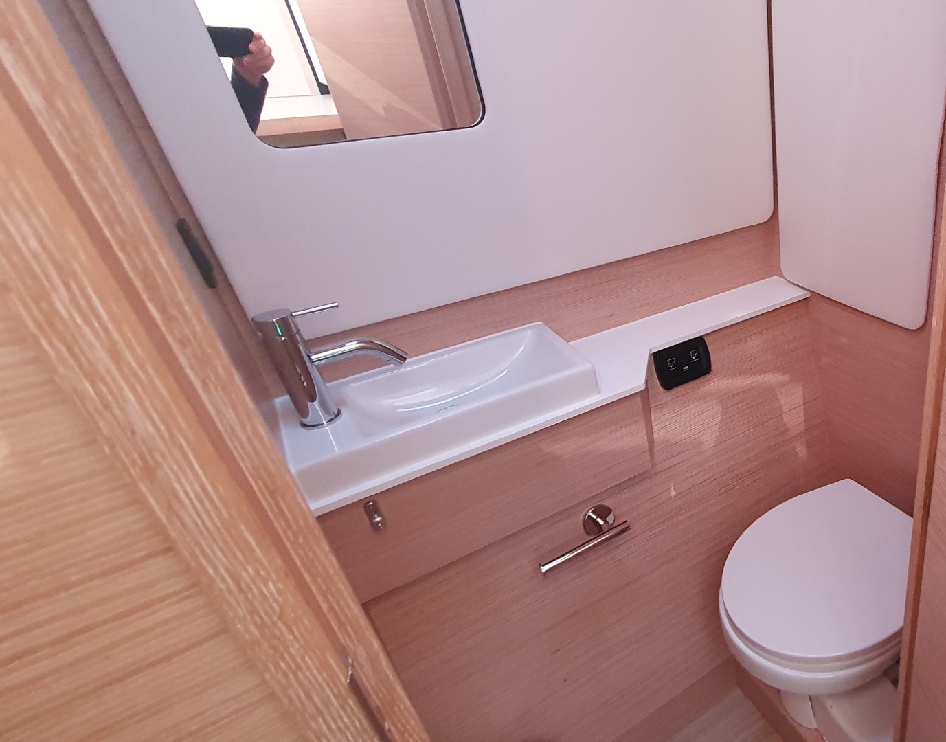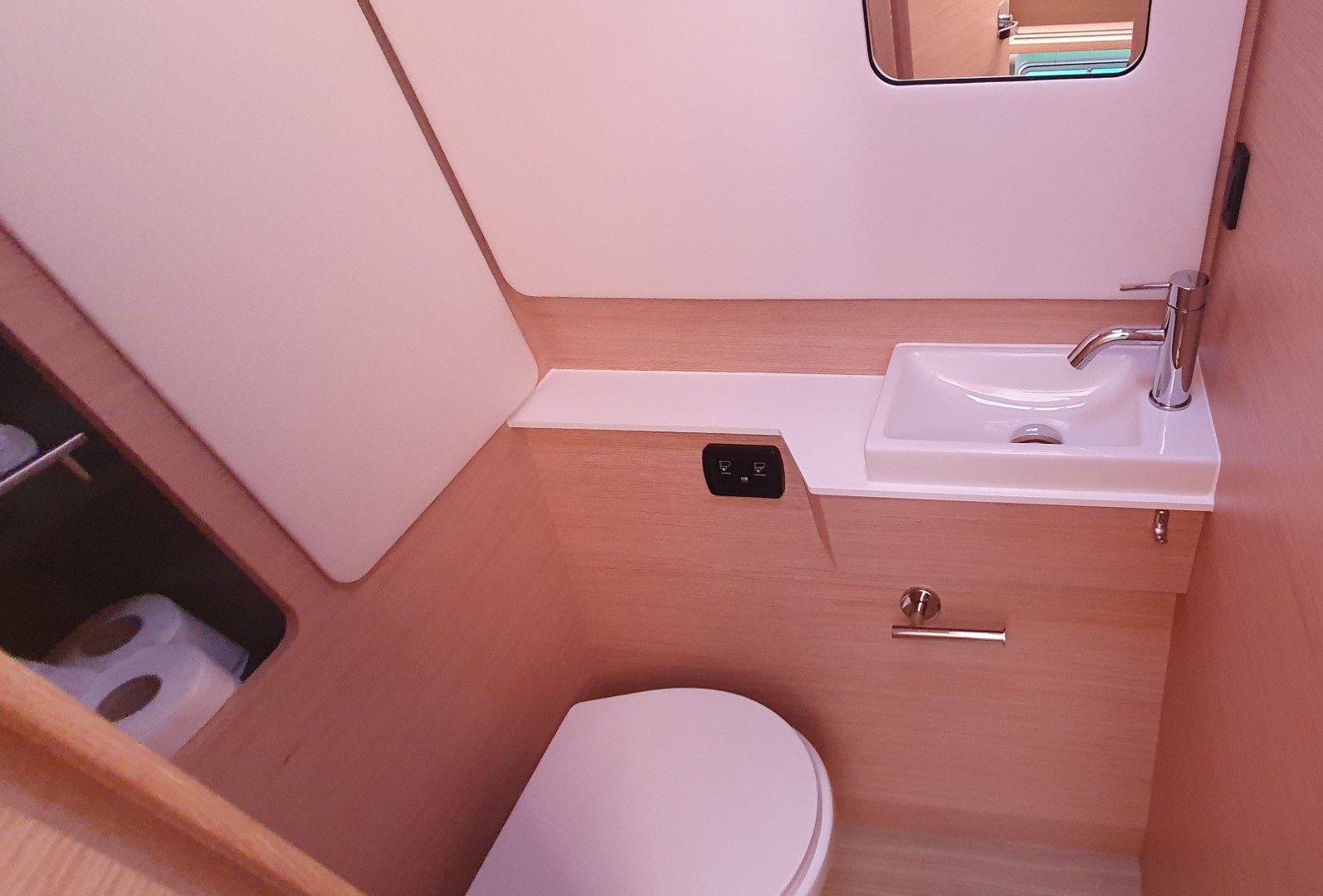 | Inside | FUSION Sound System, Gasherd mit Backofen, Gefrierschrank, Generator, Heizung, Klimaanlage (Landstrom), Kühlschrank, Ladegerät, Mikrowelle, Pantryausstattung, Radio mit CD und USB, TV, Ventilatoren in Salon und Kabinen, Warmwasser, Watermaker |