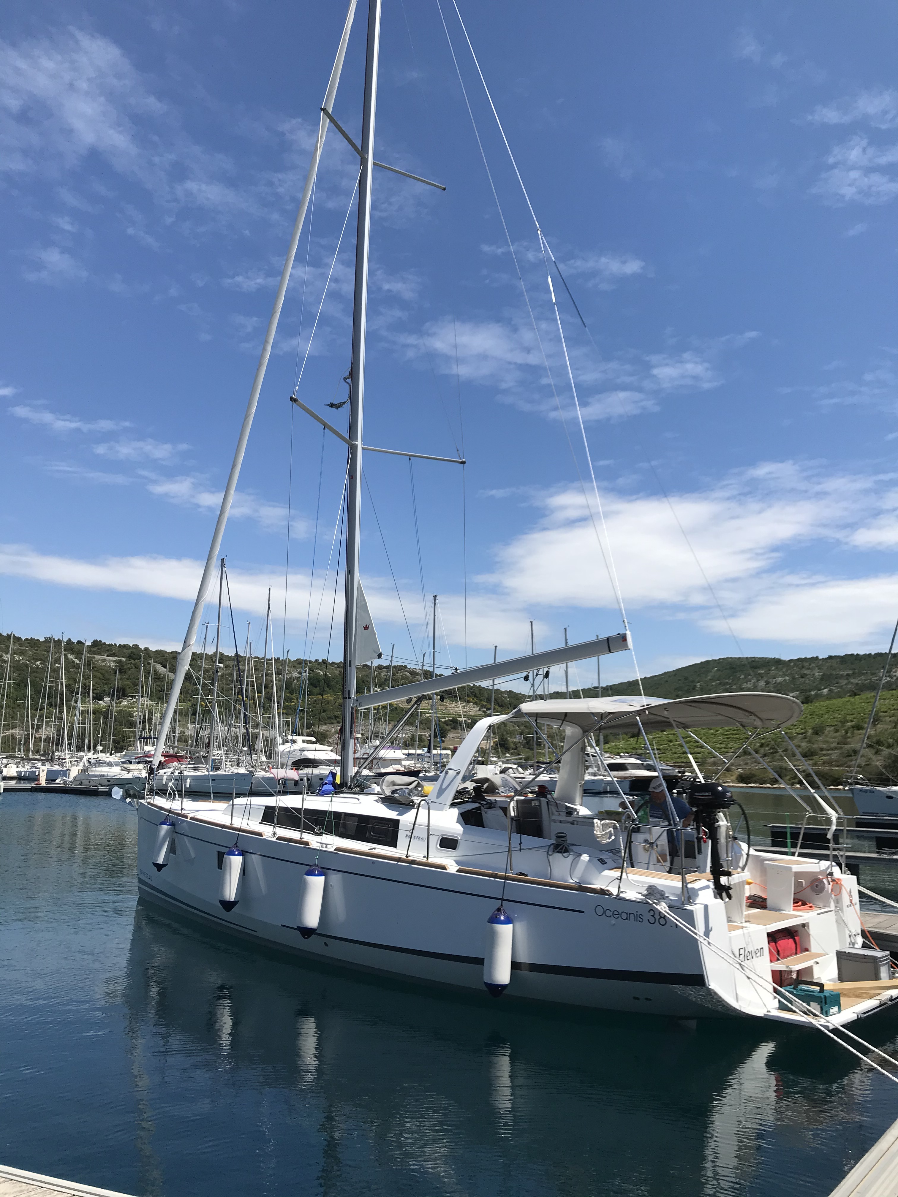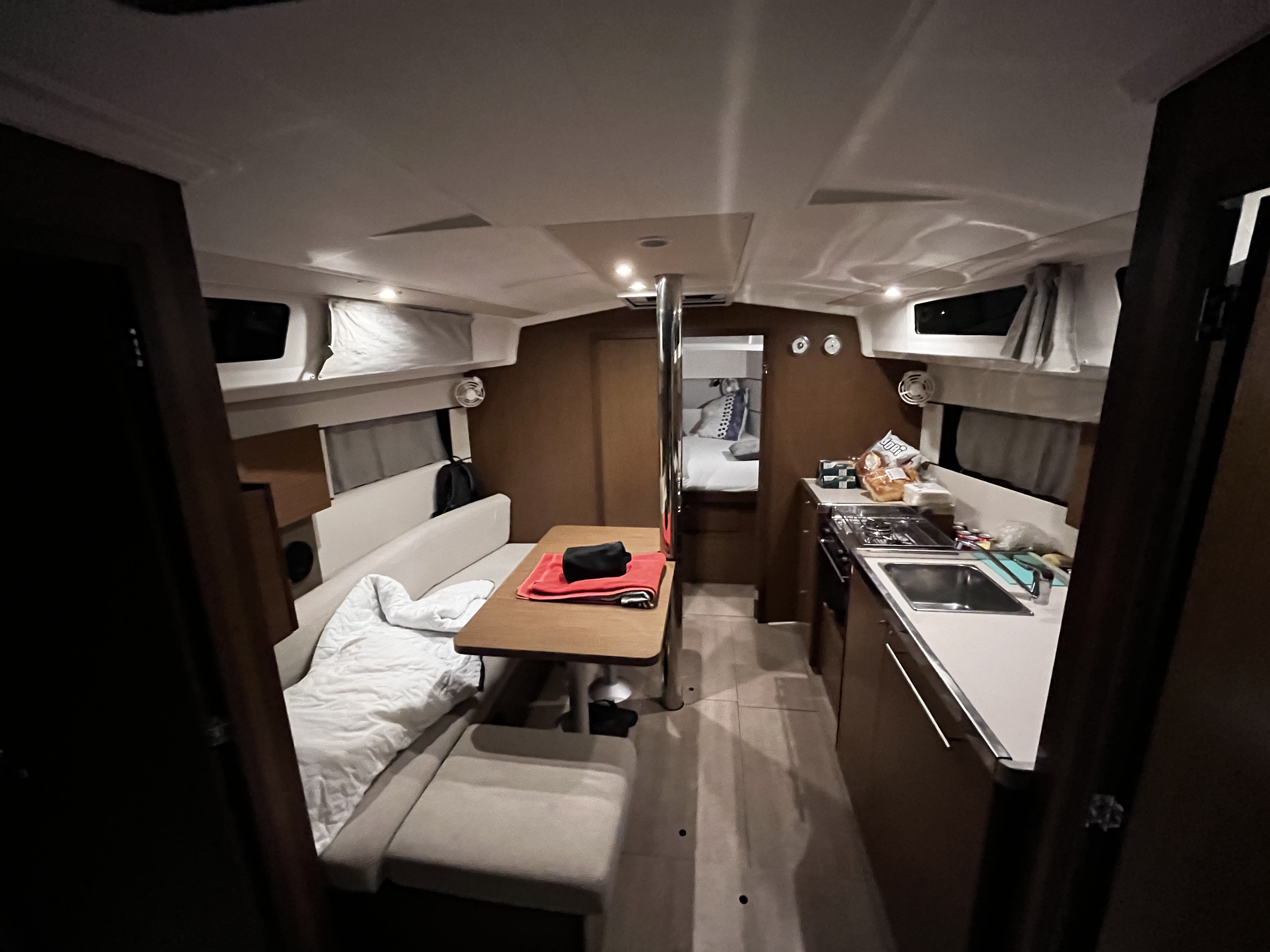 | Outside | Badeplattform, Biminitop, Cockpitdusche, Cockpitlautsprecher, Cockpitleuchte, Cockpittisch, elektr. Ankerwinsch, Solaranlage, Sprayhood |