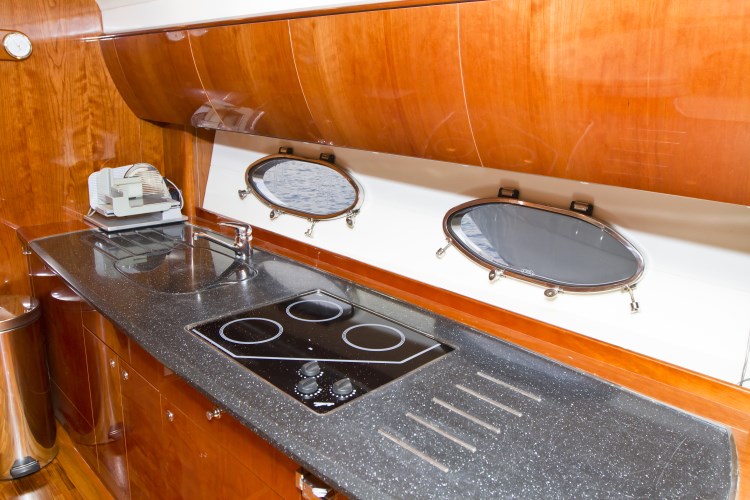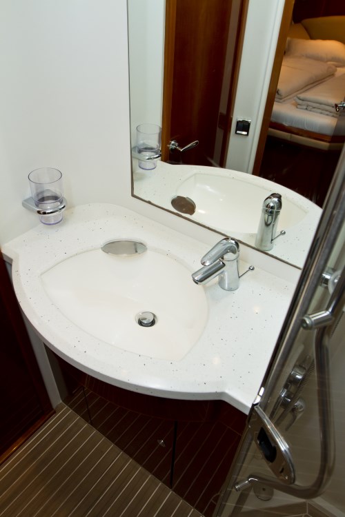 | Outside | 220 V-Landanschluss, Anker mit Kette, Badeleiter, Badeplattform, Cockpitdusche, Cockpitkühlschrank, Cockpittisch, Cockpittisch absenkbar, elektr. Ankerwinsch, Fender, Festmacherleinen, Grill, Hardtop, hydraul. Gangway, Sonnendeck, Teak auf Badeplattform, Teak im Cockpit, Tendergarage |