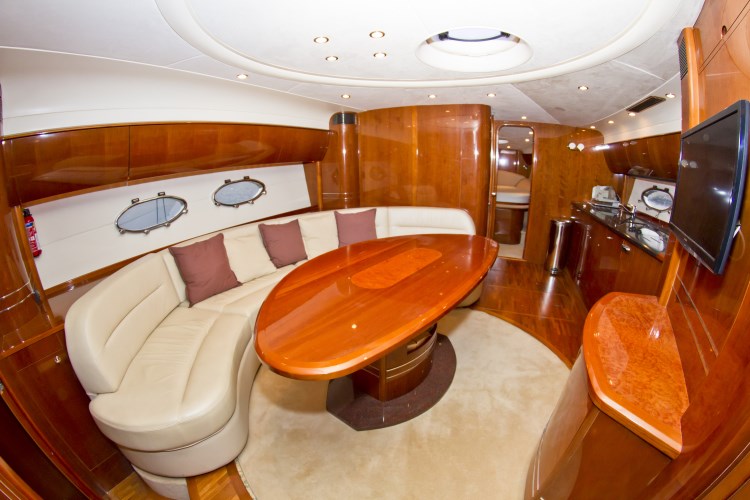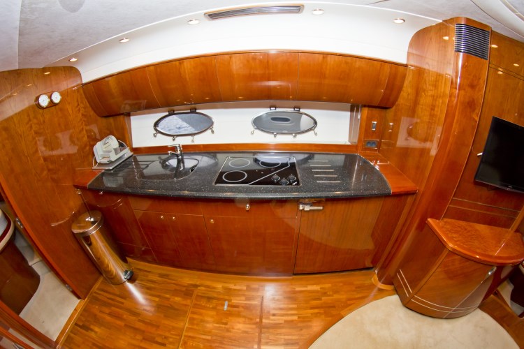 | Inside | Eiswürfelmaschine, Generator, Geschirrspüler, Heizung, Herd, Kaffeemaschine, Klimaanlage (ohne Landstrombedarf), Kühlschrank, Ladegerät, Radio mit CD/MP3/USB, SKY-Sat-Programme, TV + DVD, Warmwasser, WC (elektr.) |