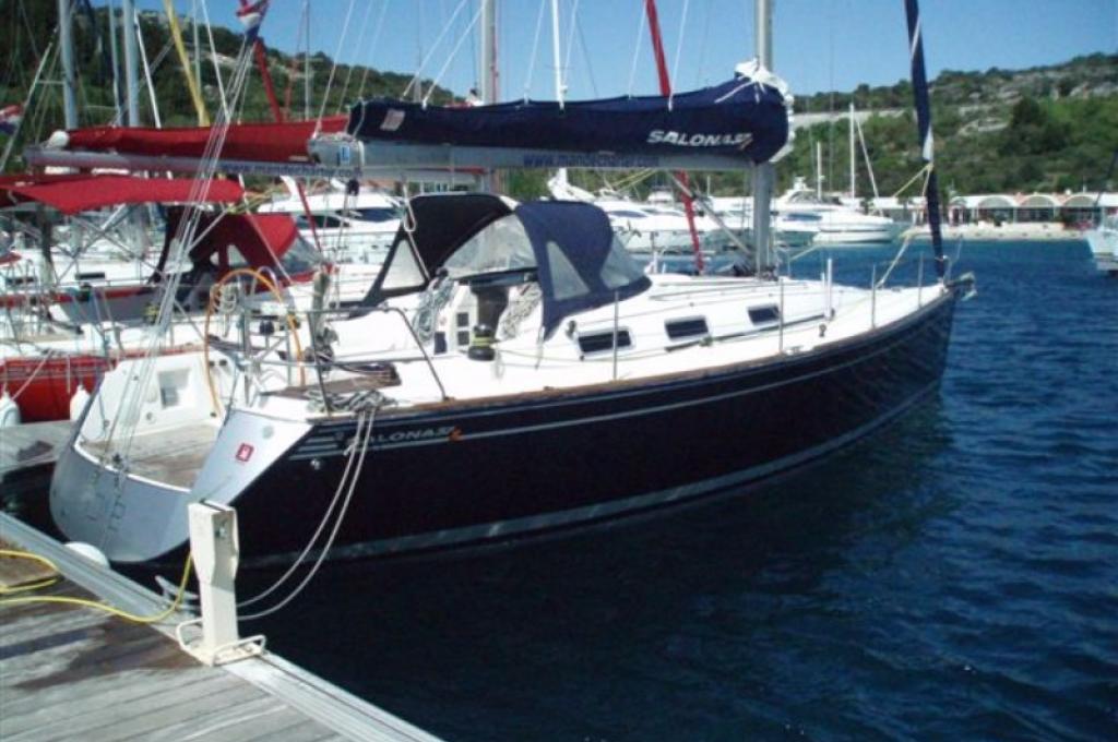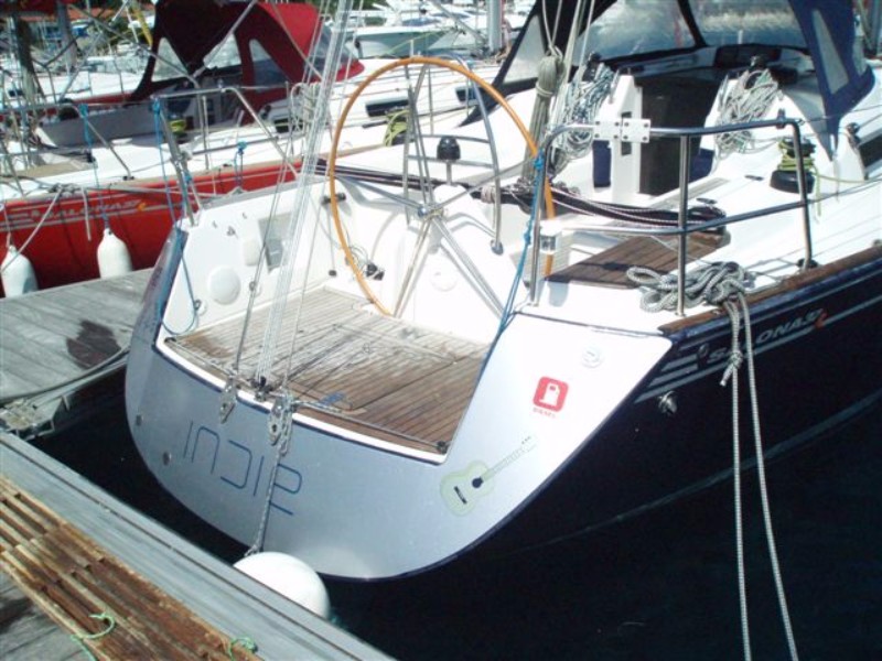 | Outside | Biminitop, Cockpitdusche, Cockpittisch, elektr. Ankerwinsch, Gangway, Sprayhood, Teak im Cockpit |
