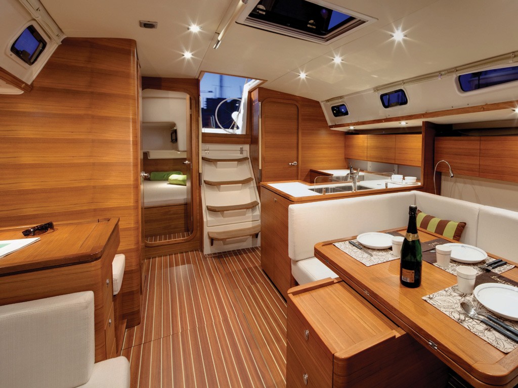 | Outside | Biminitop, Cockpitdusche, Cockpittisch, elektr. Ankerwinsch, Gangway, Sprayhood, Teak im Cockpit |