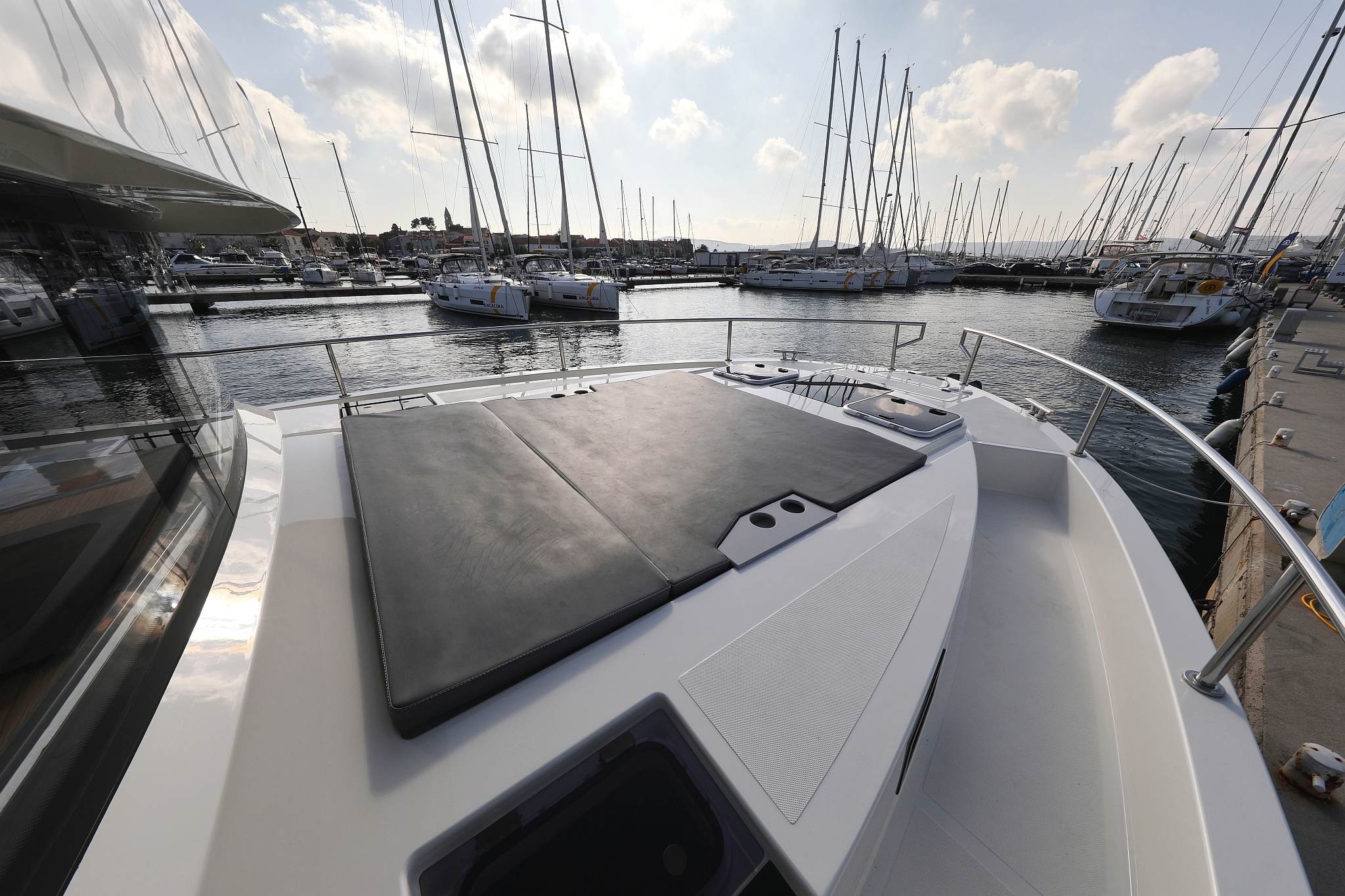 | Outside | 220 V-Landanschluss, Anker mit Kette, Badeleiter, Badeplattform, Biminitop, Bootshaken, Cockpitdusche, Cockpitlautsprecher, Cockpitpolster, Cockpittisch, elektr. Ankerwinsch, Fender, Festmacherleinen, Gangway, Solaranlage, Wasserschlauch |