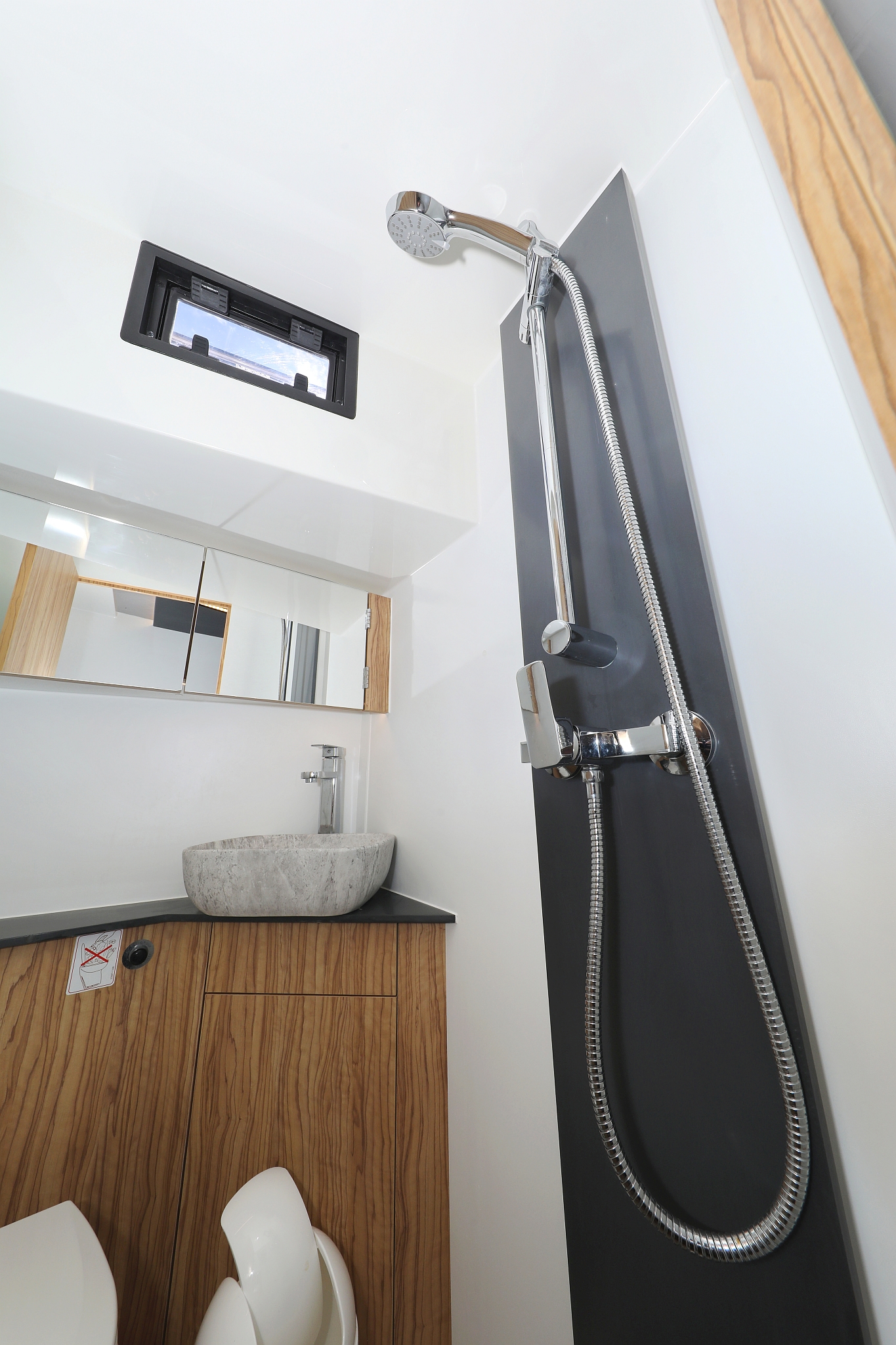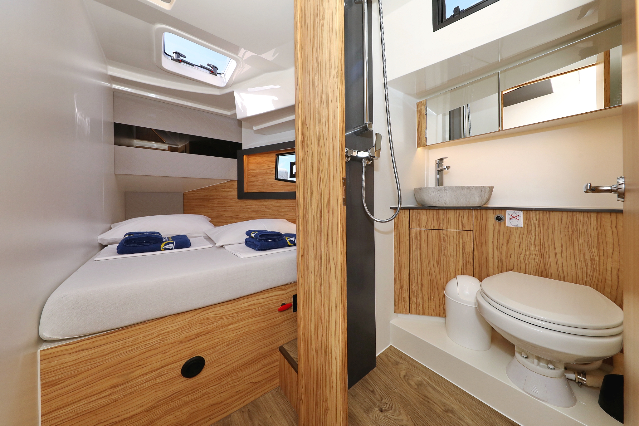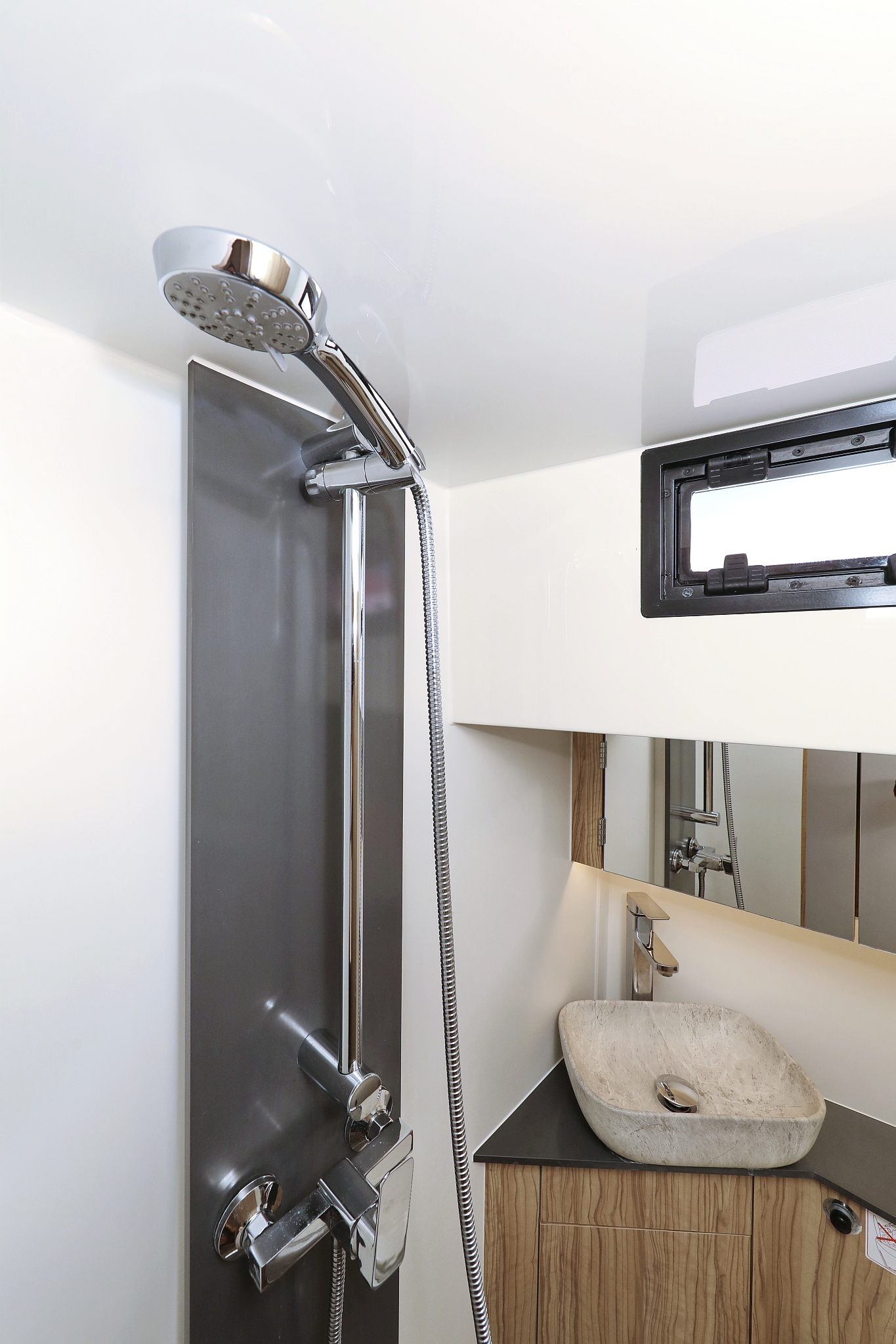 | Inside | 220V Steckdosen, 3-flammiger Gasherd, Fäkalientank, Heizung, Klimaanlage (Landstrom), Kühlschrank, Ladegerät, Pantryausstattung, Radio, Salontisch absenkbar, USB Steckdosen in Salon und Kabinen, WC (elektr.) |