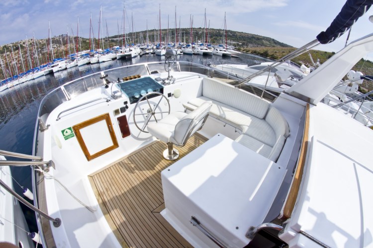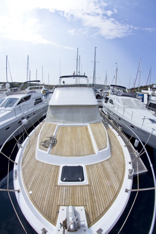 | Outside | 220 V-Landanschluss, Anker mit Kette, Badeleiter, Badeplattform, Cockpitdusche, Cockpitkühlschrank, elektr. Ankerwinsch, elektr. Davits, Fender, Festmacherleinen, Flybridge, Hardtop, hydraul. Gangway, Sonnendeck, Teak auf Badeplattform, Teak auf Flybridge, Teak im Cockpit |