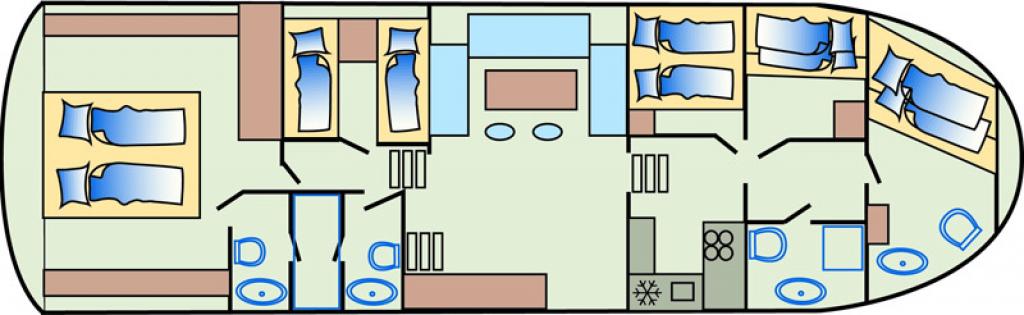 | Kabinen: | 5 | Kojen: | 12 |