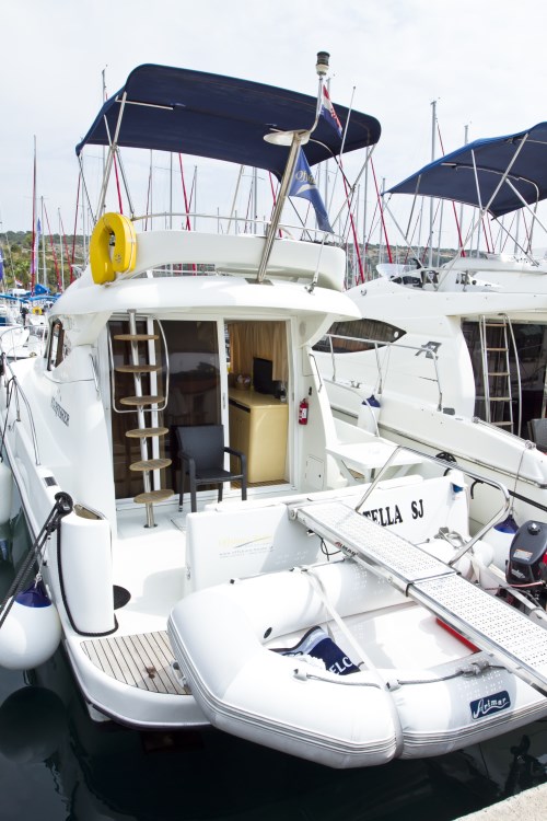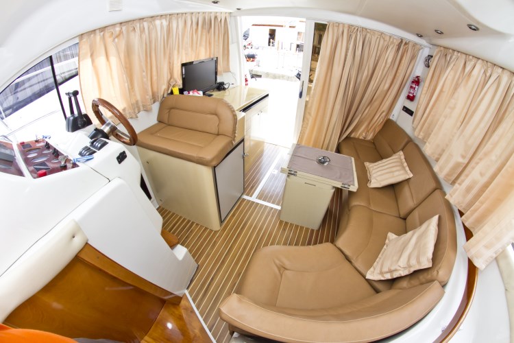 | Outside | Anker mit Kette, Badeleiter, Badeplattform, Cockpitdusche, Cockpittisch, elektr. Ankerwinsch, Fender, Festmacherleinen, Flybridge, hydraul. Gangway, Sonnendeck |