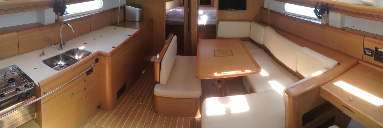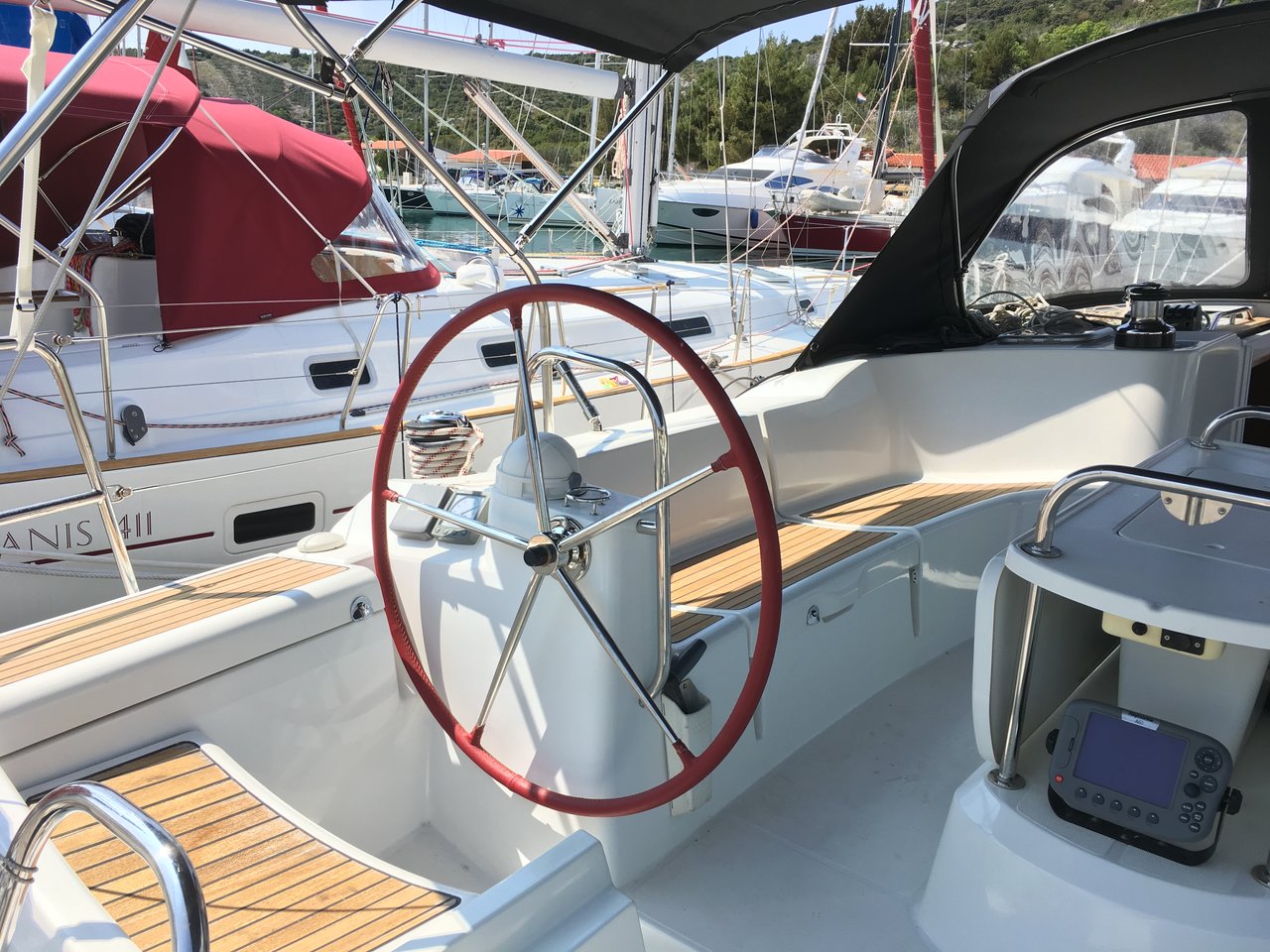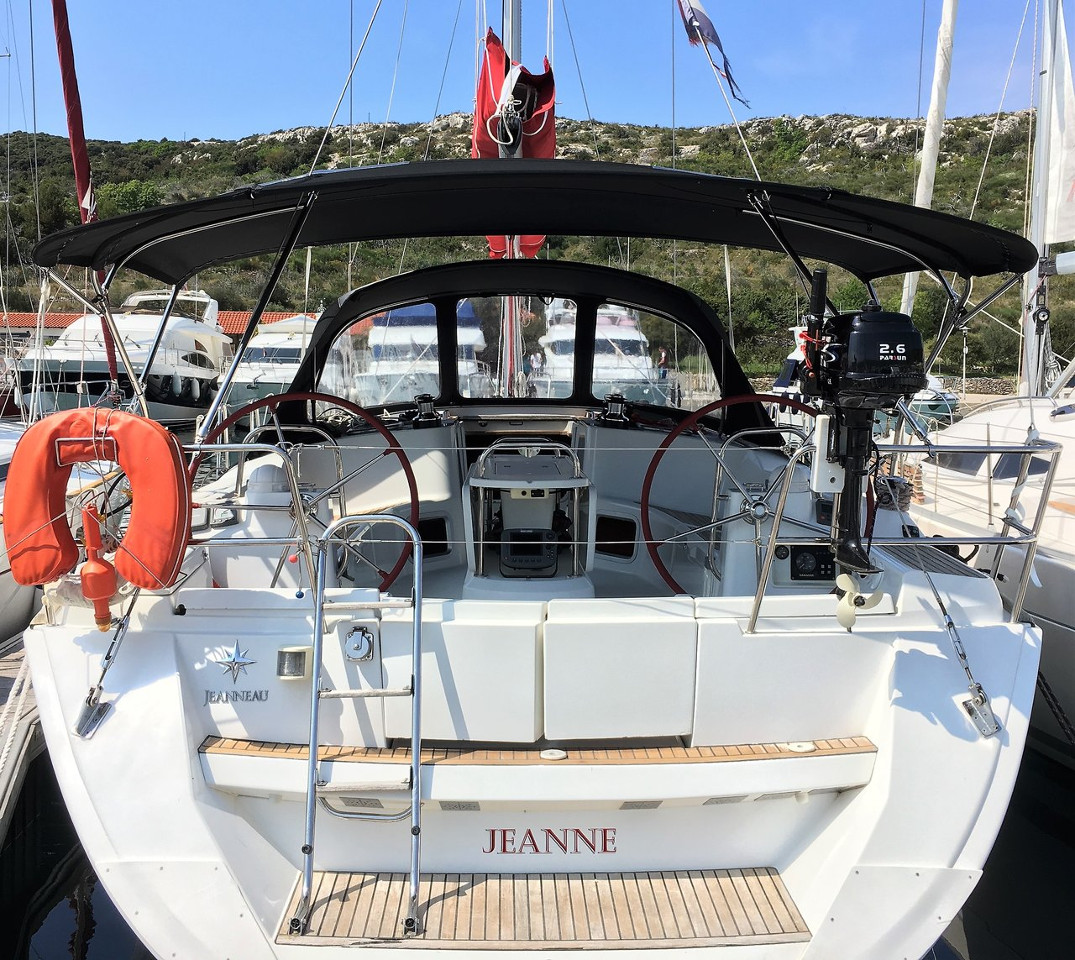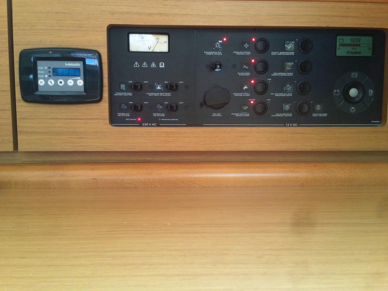 | Outside | 12 V-Anschluss, 220 V-Landanschluss, Badeleiter, Biminitop, Bootshaken, Cockpitdusche, Cockpitlautsprecher, Cockpittisch, Delta-Anker, elektr. Ankerwinsch, Fender, Sprayhood |