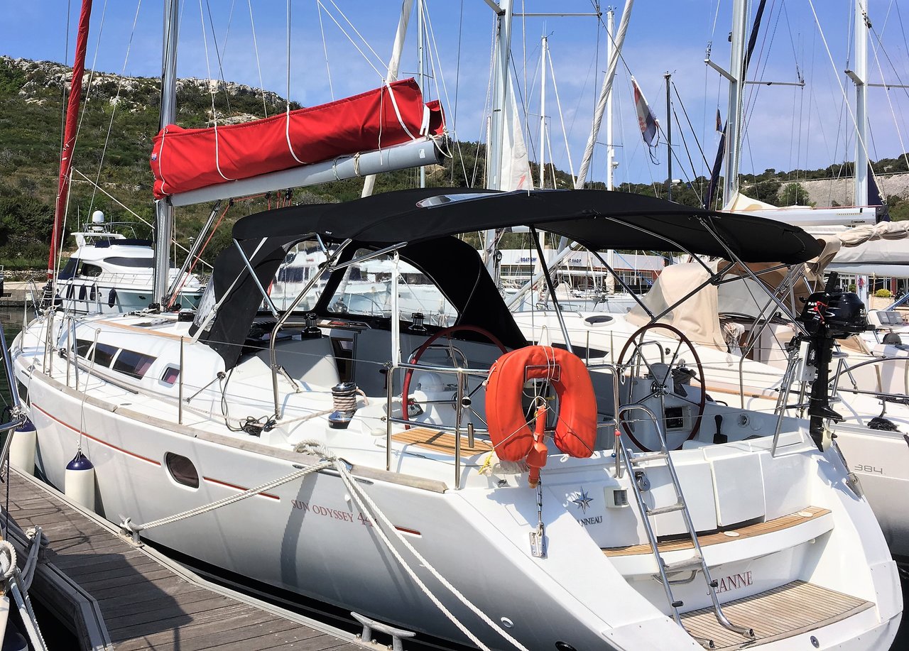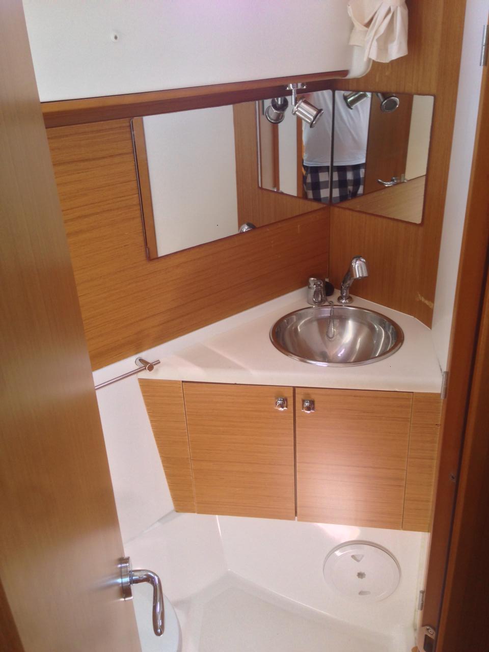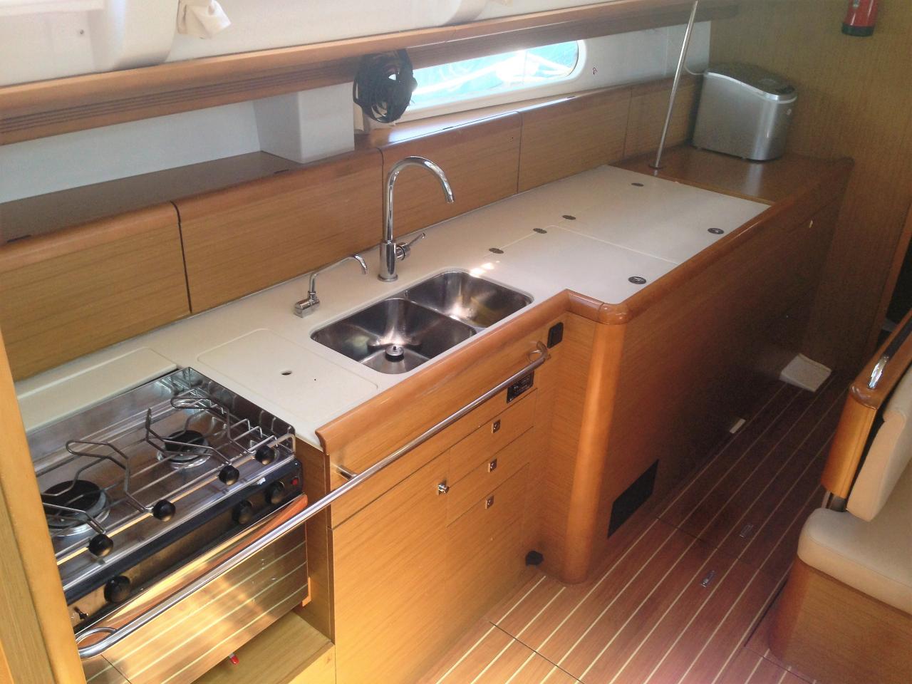 | Outside | 12 V-Anschluss, 220 V-Landanschluss, Badeleiter, Biminitop, Bootshaken, Cockpitdusche, Cockpitlautsprecher, Cockpittisch, Delta-Anker, elektr. Ankerwinsch, Fender, Sprayhood |