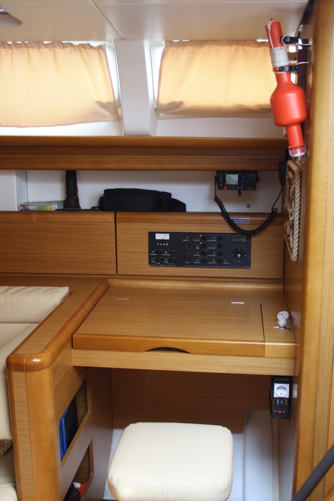 | Navigation | Barometer, Echolot, elektr. Seekarten, Fernglas, GPS mit Farbkartenplotter im Cockpit, Hafenhandbücher, Handpeilkompass, Kompass, Seekarten, Sumlog, Windmesser |