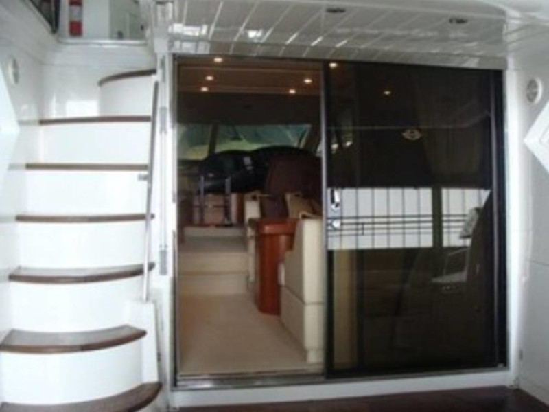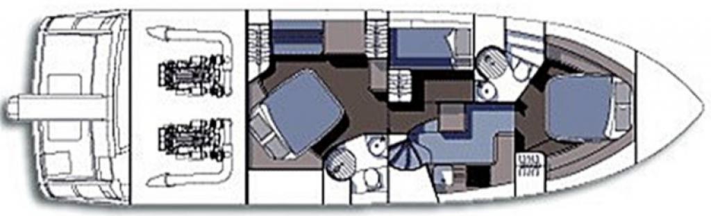 | Outside | Anker mit Kette, Badeleiter, Badeplattform, Biminitop, Cockpittisch, elektr. Ankerwinsch, Fender, Festmacherleinen, Flybridge, Sonnendeck, Teak auf Badeplattform, Teak im Cockpit |