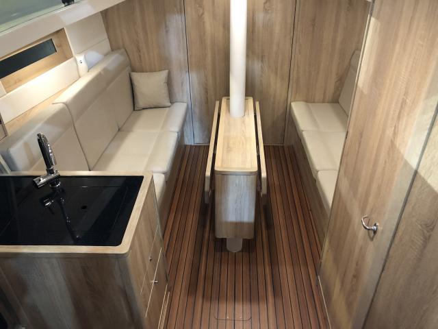 | Outside | Anker mit Seil, Biminitop, Cockpitdusche, Windex |