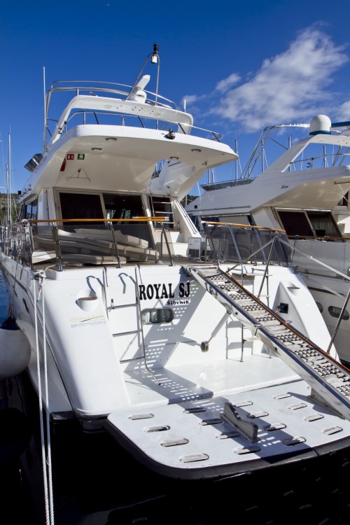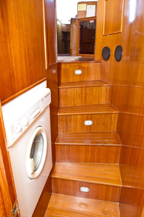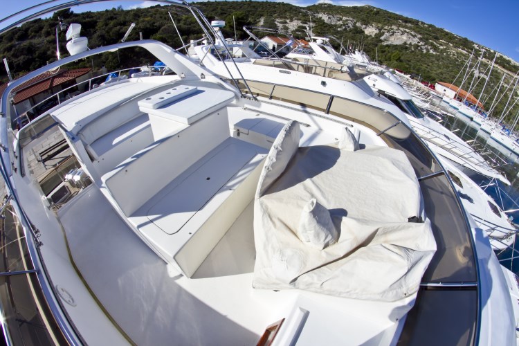 | Outside | 220 V-Landanschluss, Anker mit Kette, Badeleiter, Badeplattform, Biminitop, Cockpitdusche, Cockpittisch, elektr. Ankerwinsch, Fender, Flybridge, hydraul. Gangway, Sonnendeck, Teak im Cockpit |