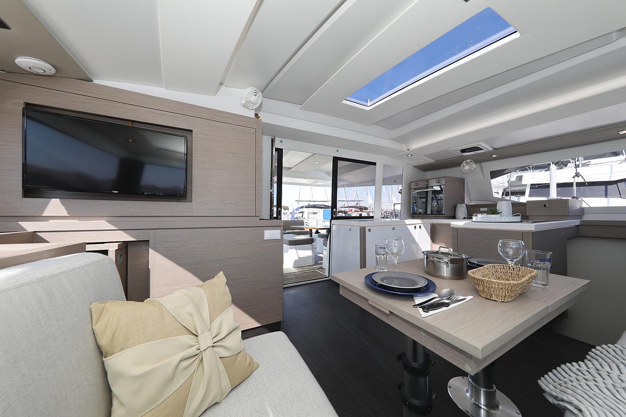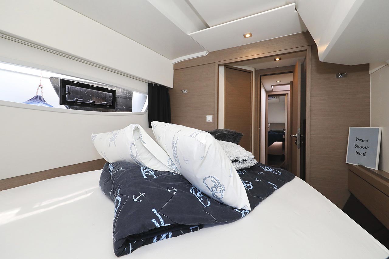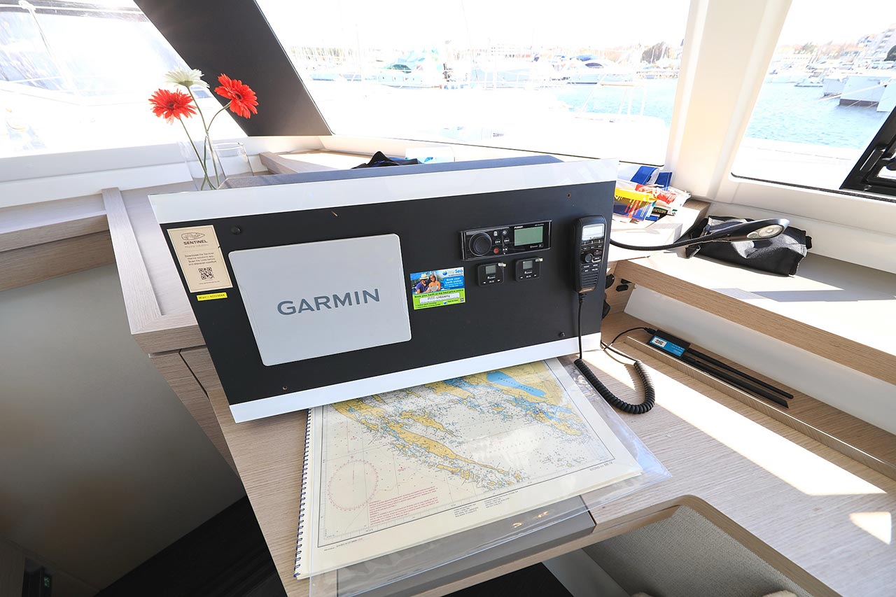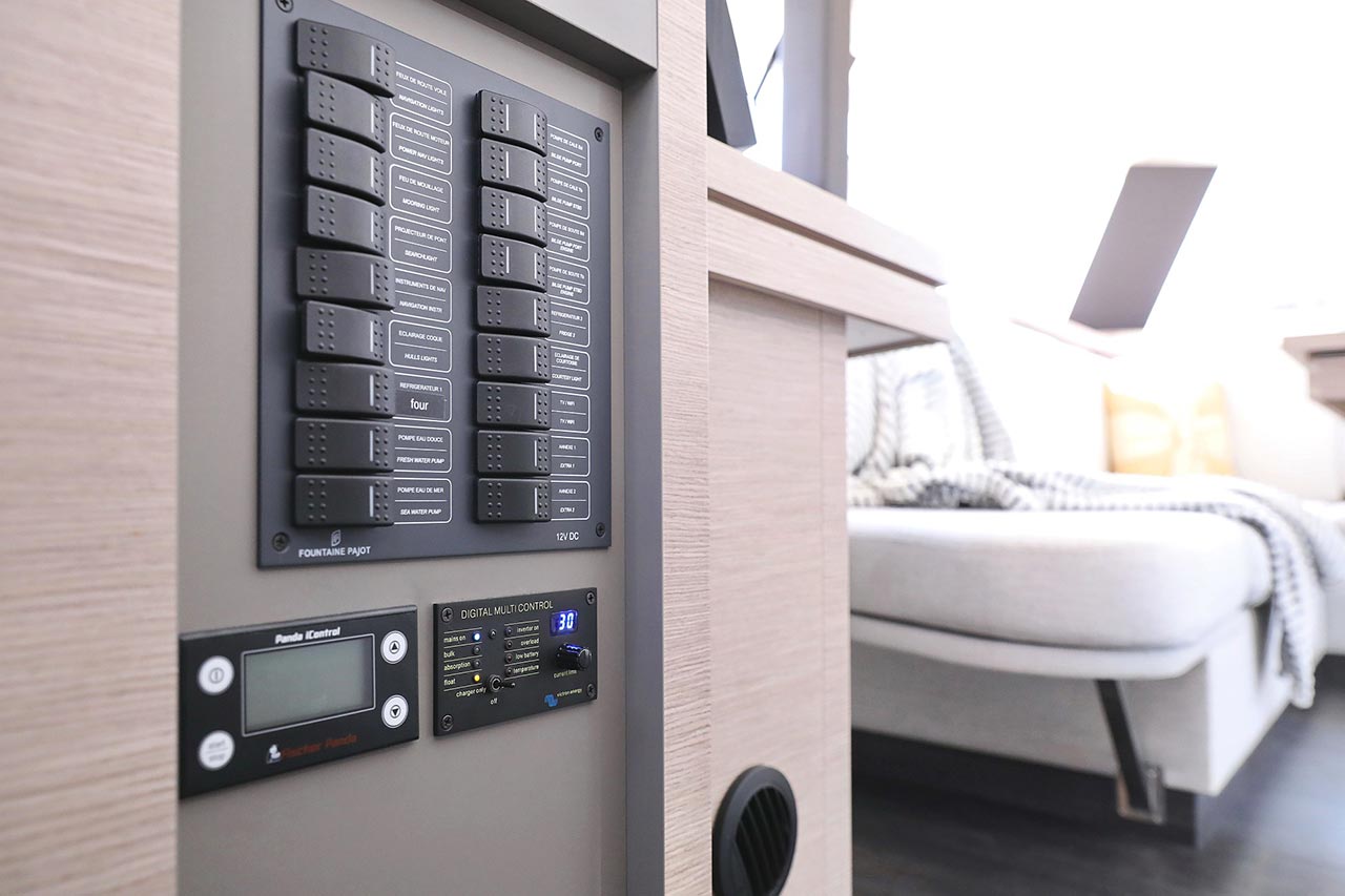 Borduhr, Generator, Heizung, Inverter 12V/220V, Kühlschrank, Ladegerät, Luftpumpe für Beiboot, Pantryausstattung, Radio mit Bluetooth, Salontisch absenkbar, Ventilatoren in Kabinen, Warmwasser |