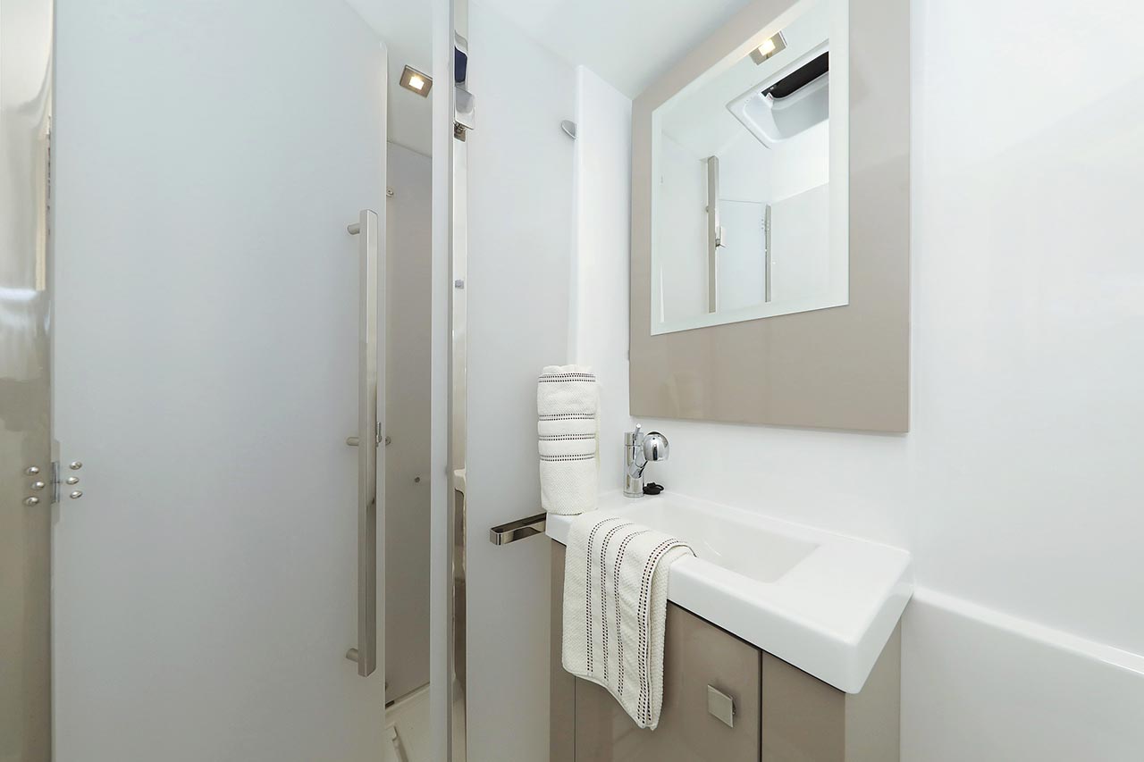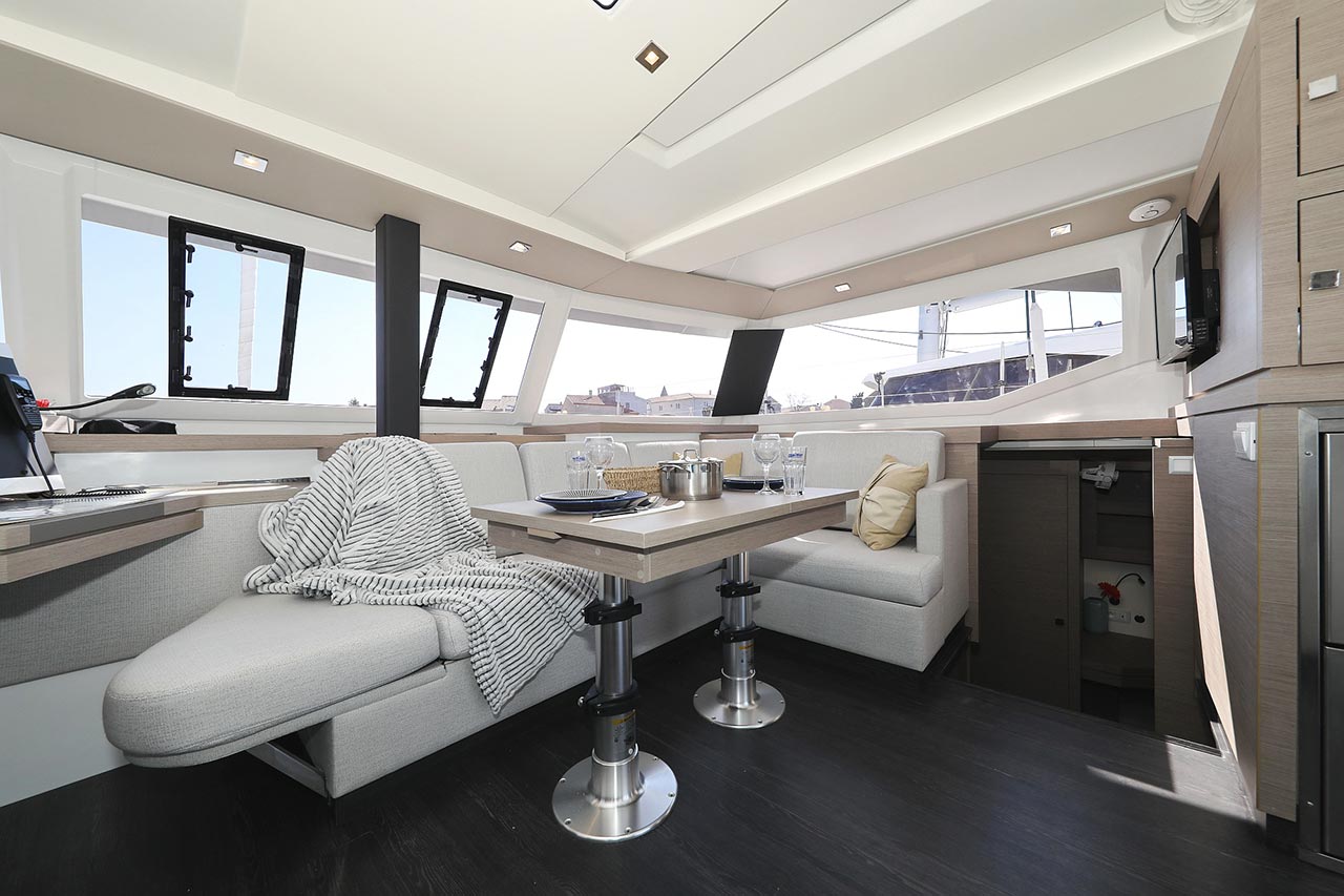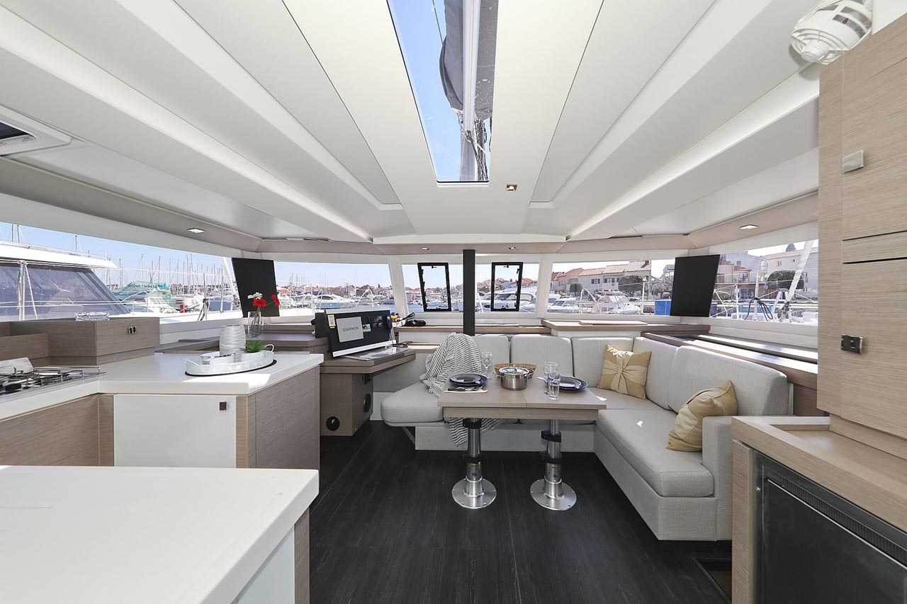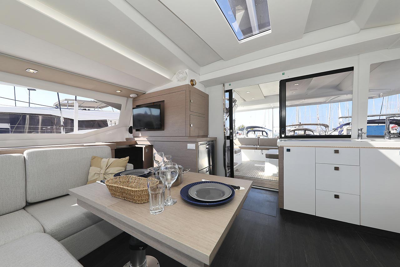 Borduhr, Generator, Heizung, Inverter 12V/220V, Kühlschrank, Ladegerät, Luftpumpe für Beiboot, Pantryausstattung, Radio mit Bluetooth, Salontisch absenkbar, Ventilatoren in Kabinen, Warmwasser |