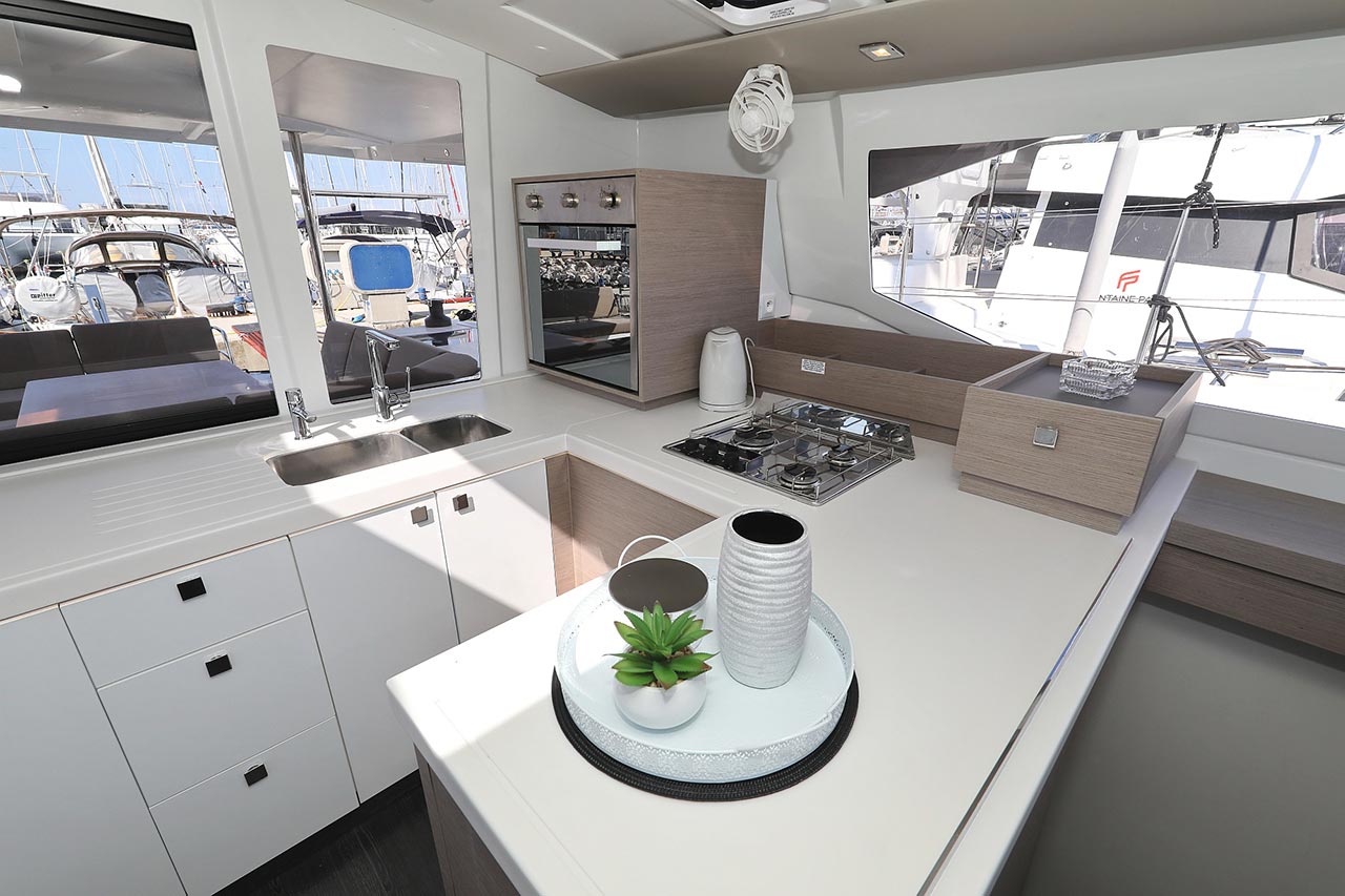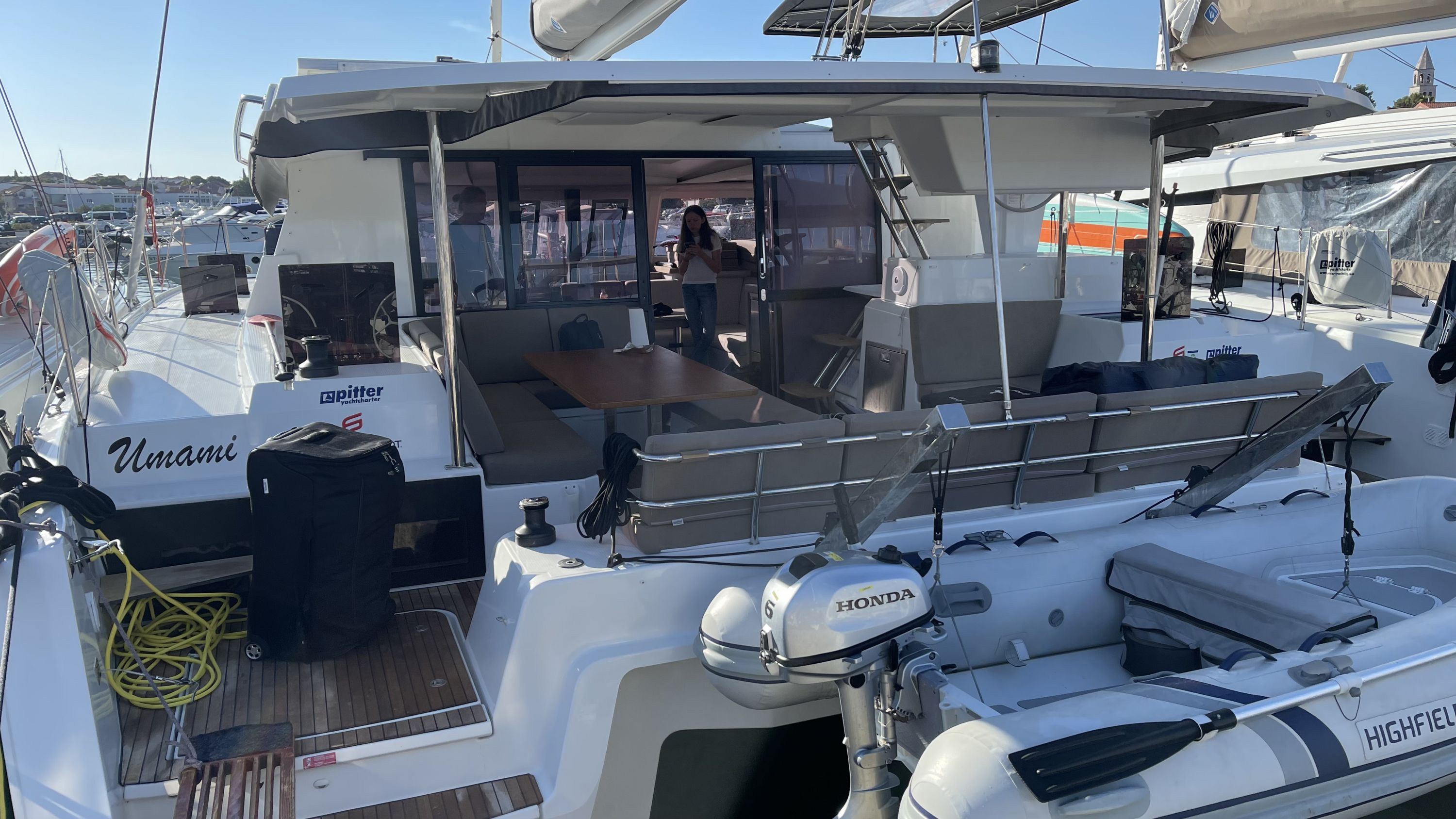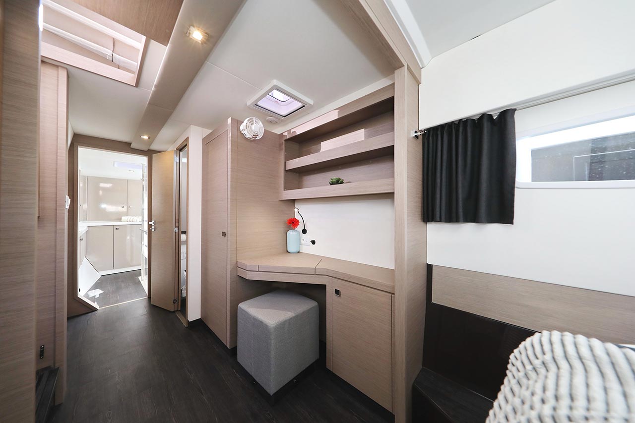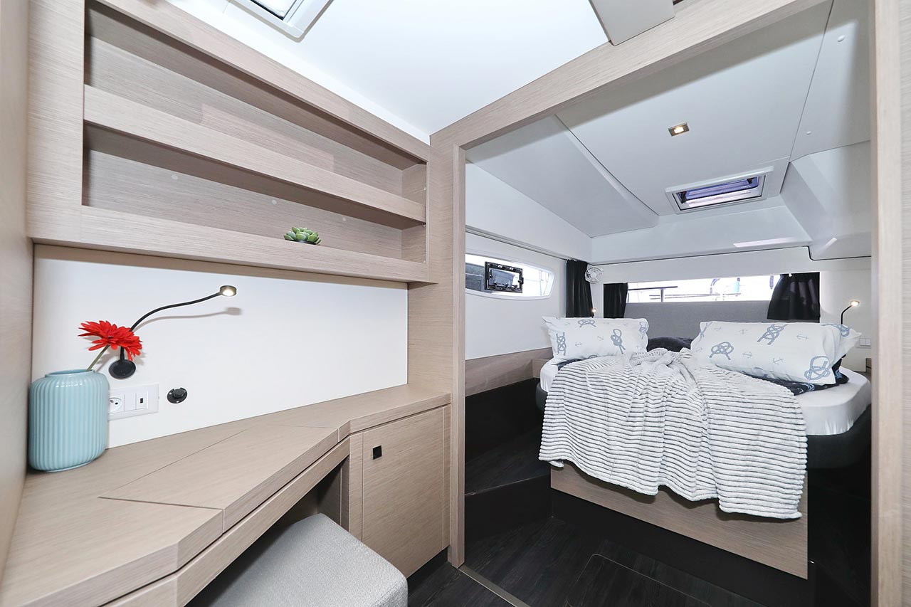 Borduhr, Generator, Heizung, Inverter 12V/220V, Kühlschrank, Ladegerät, Luftpumpe für Beiboot, Pantryausstattung, Radio mit Bluetooth, Salontisch absenkbar, Ventilatoren in Kabinen, Warmwasser |