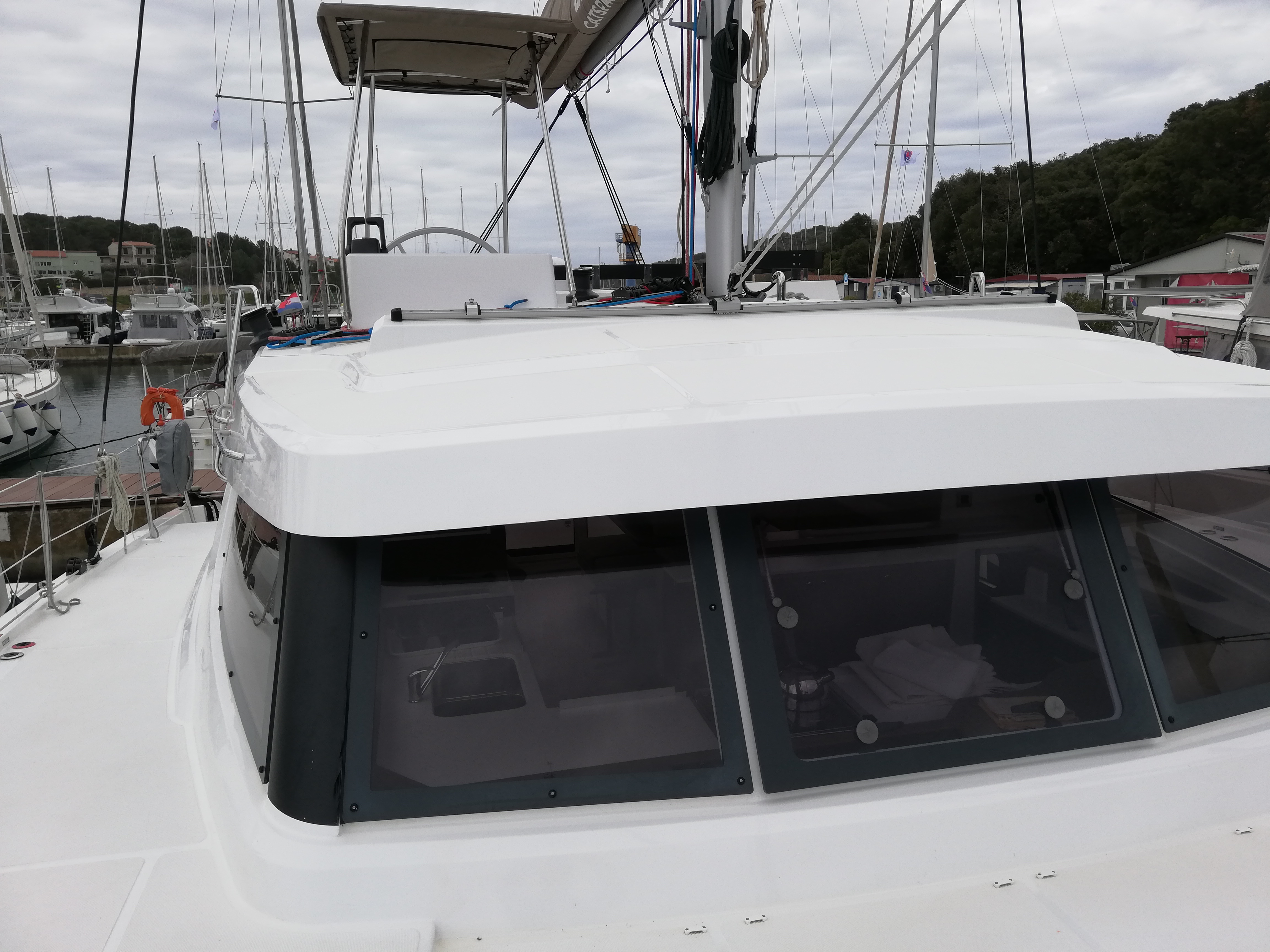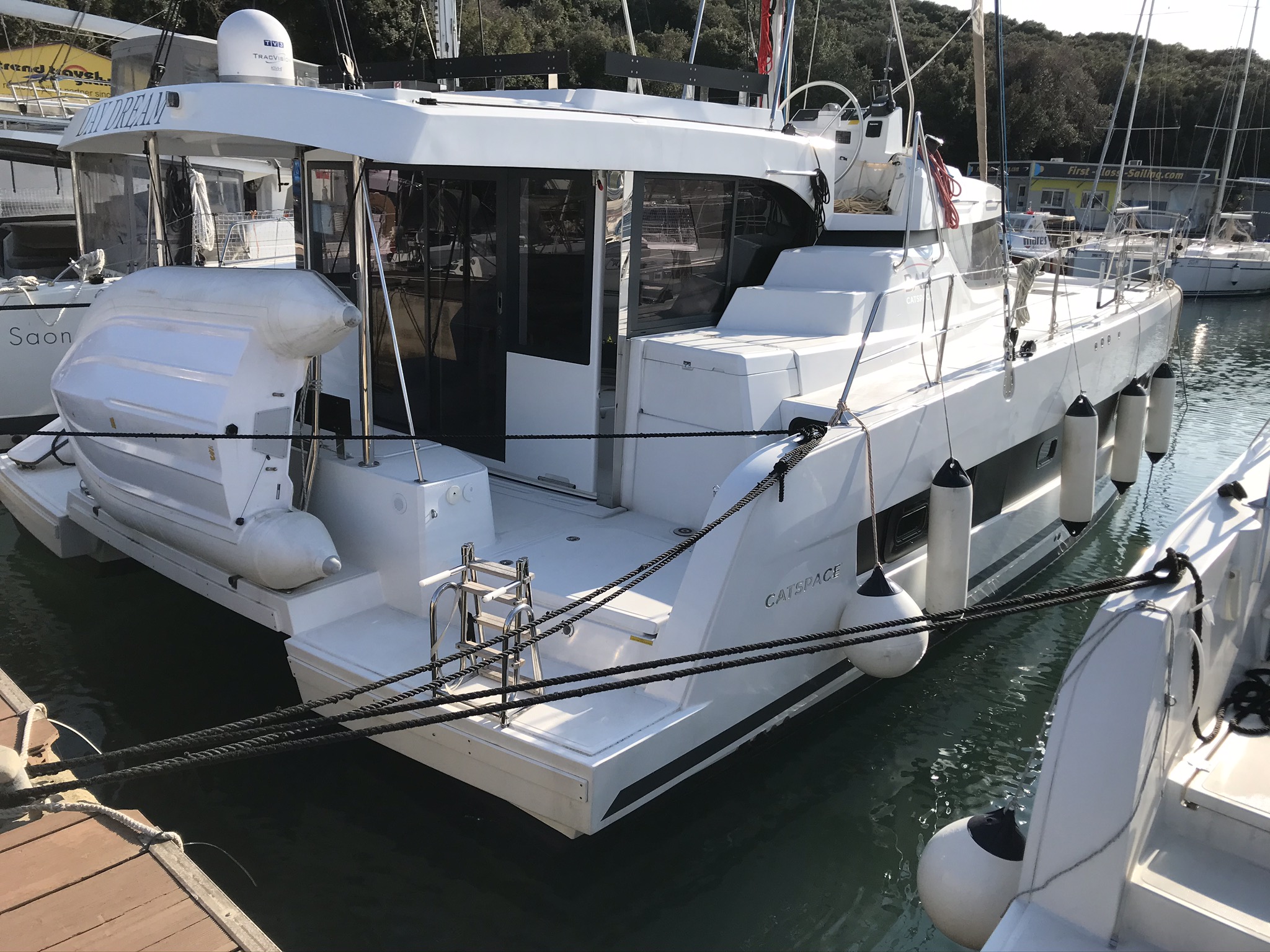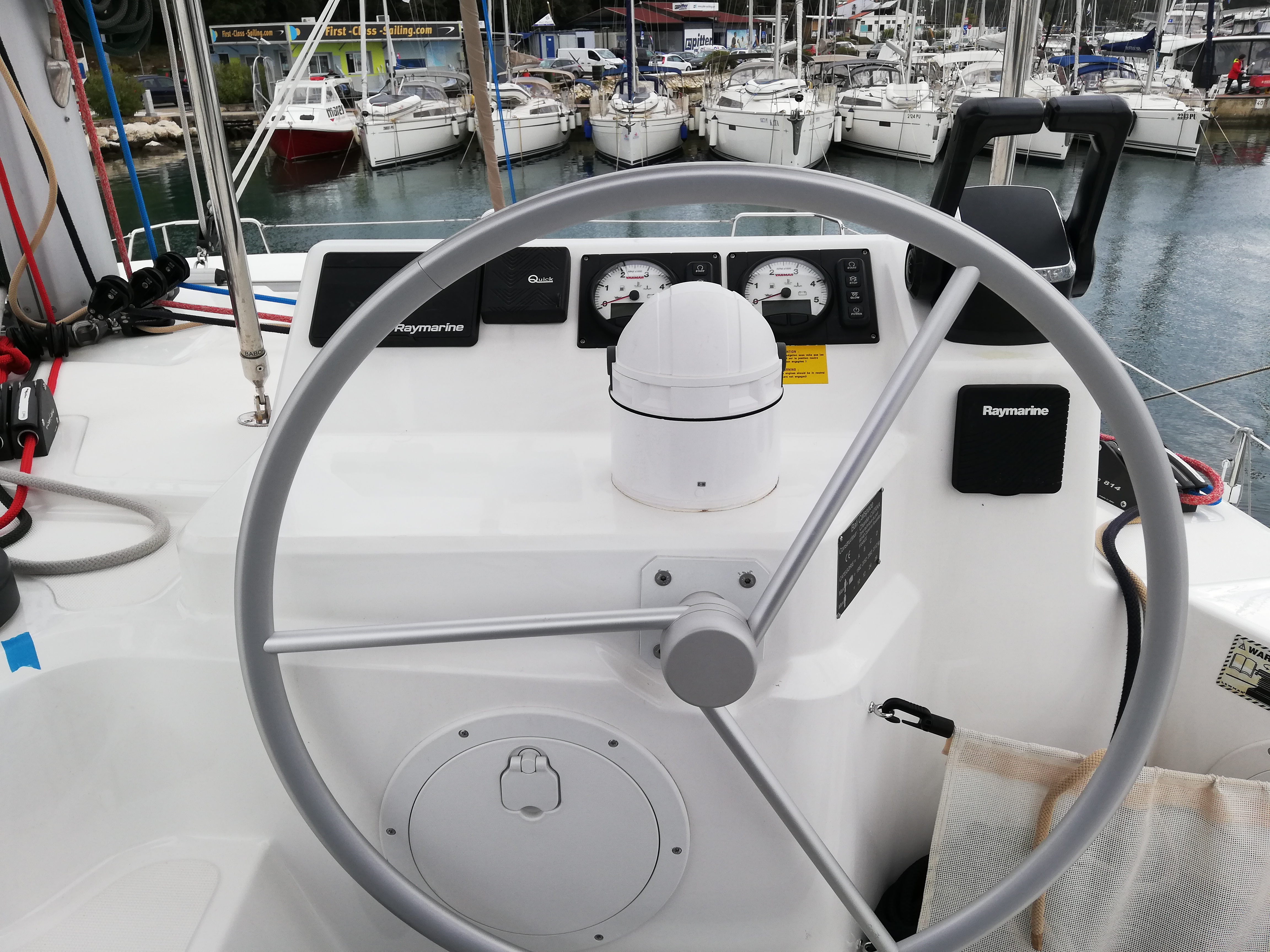 | Outside | 220 V-Landanschluss, Badeplattform, Biminitop, Cockpitdusche, Cockpitlautsprecher, Cockpitpolster, Cockpittisch, Delta-Anker, elektr. Ankerwinsch, Gangway, Gas-Barbecue-Grill im Cockpit, Solaranlage |