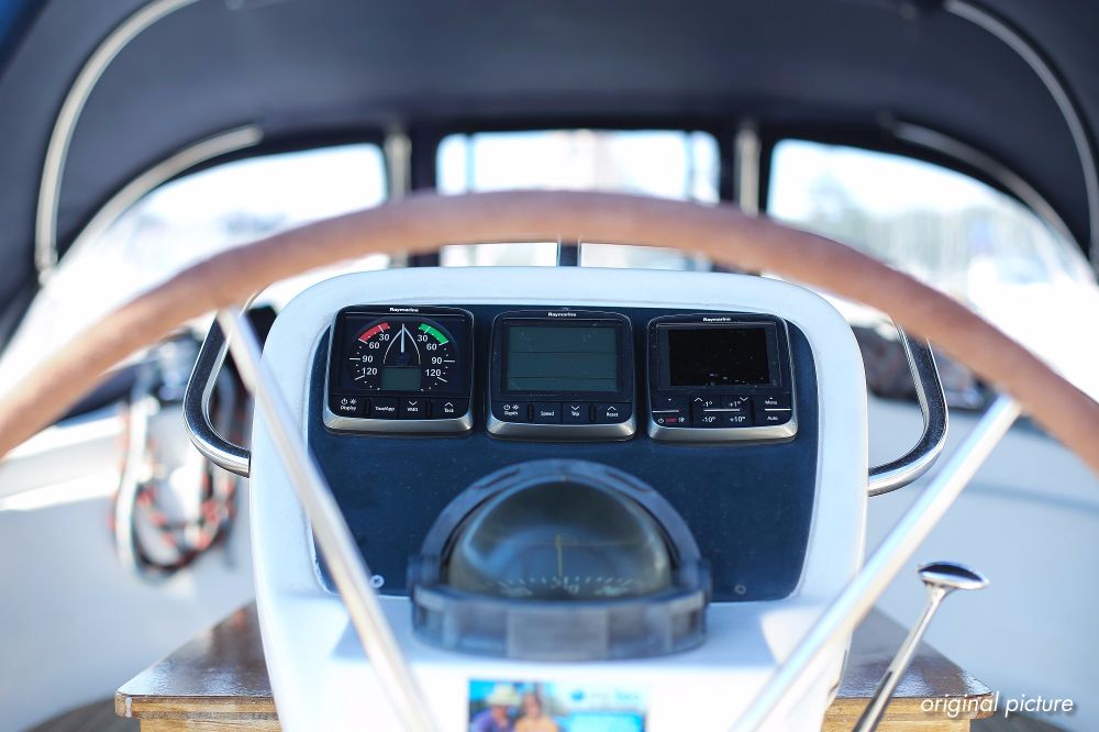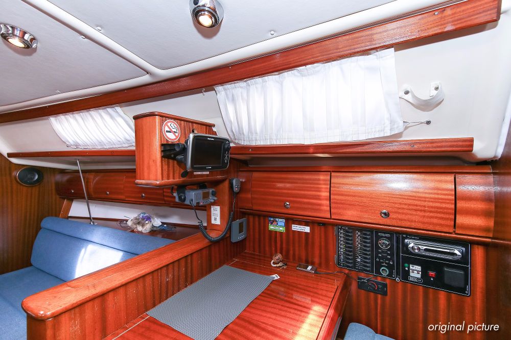| Navigation | Barometer, Fernglas, GPS mit Kartenplotter, Hafenhandbücher, Handpeilkompass, Navigationsbesteck, Seekarten, Tridata (Log, Echolot, Windm.) |