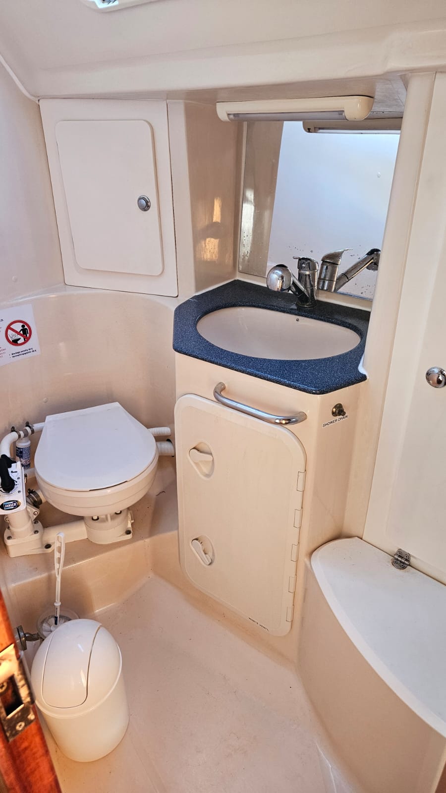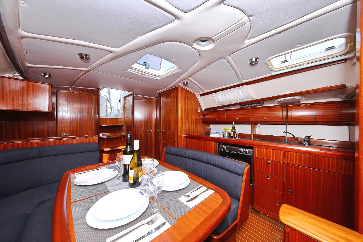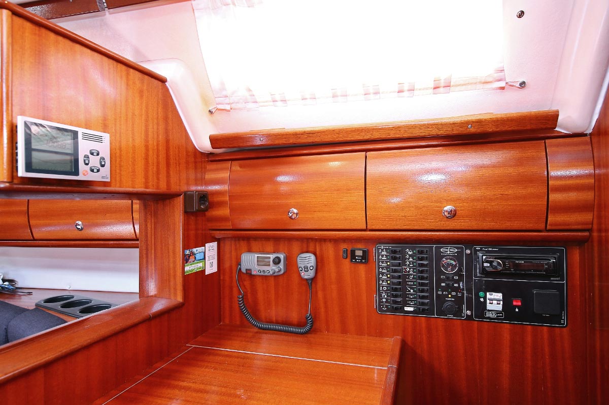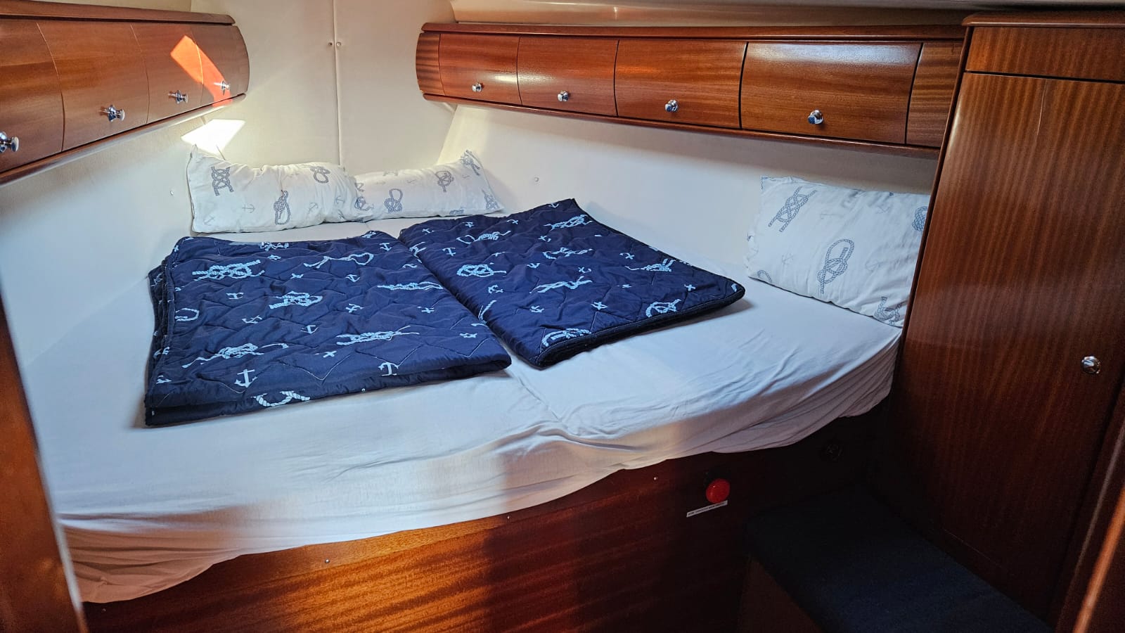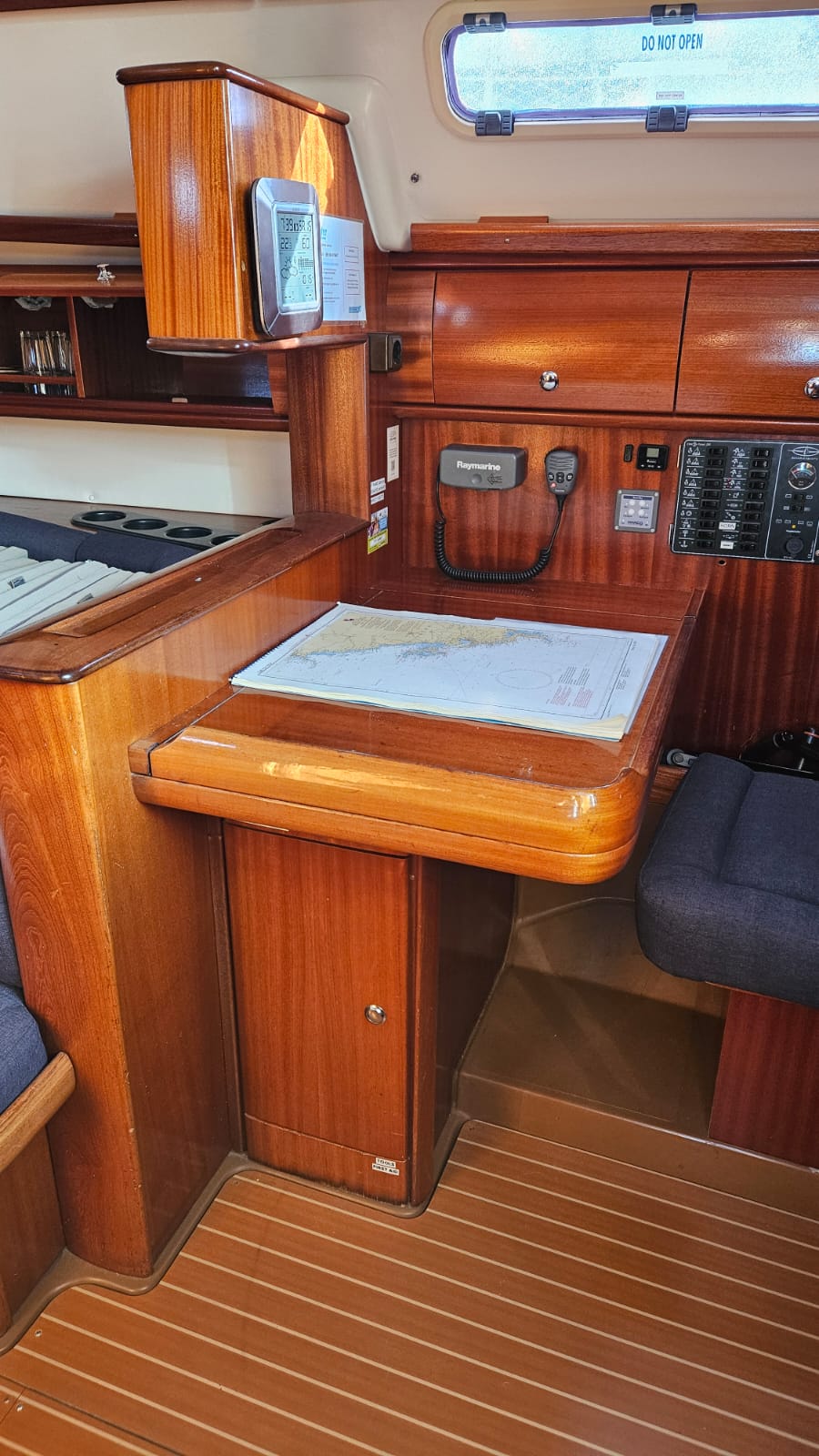 | Navigation | Barometer, Fernglas, GPS mit Kartenplotter im Cockpit, Hafenhandbücher, Navigationsbesteck, Seekarten, Tridata (Log, Echolot, Windm.), Windmesser |