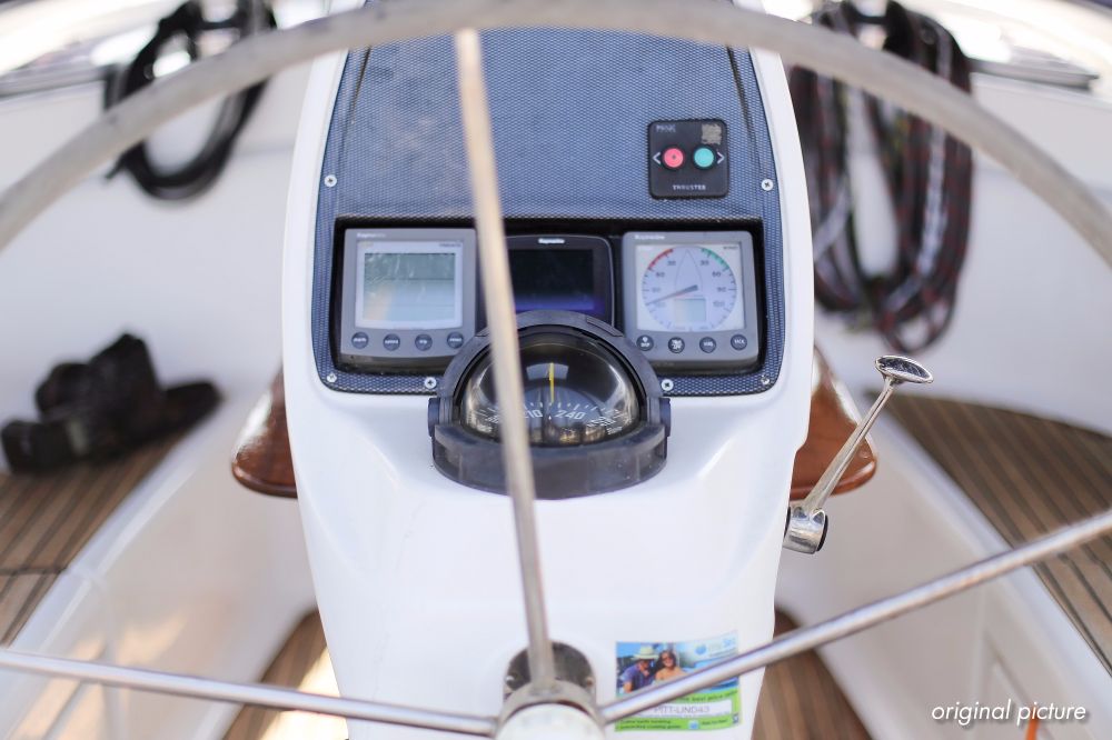 | Navigation | Barometer, Fernglas mit Peilkompass, GPS mit Kartenplotter, Hafenhandbücher, Handpeilkompass, Navigationsbesteck, Seekarten, Tridata (Log, Echolot, Windm.) |