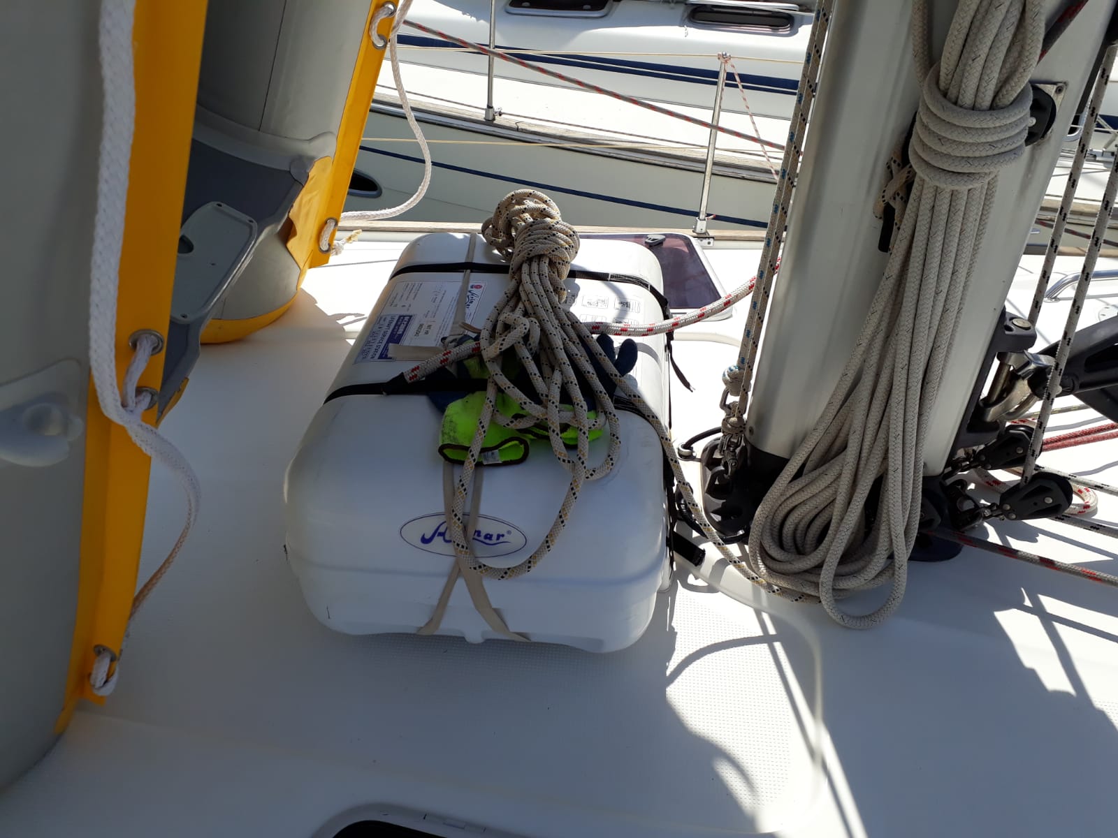 Automatikwesten, Autopilot, Blitzboje, Bootsmannstuhl, Bordapotheke, Bordwerkzeug, Bugstrahlruder, Feuerlöscher, Lifebelts, Nebelhorn, Notpinne, Notsignale, Radarreflektor, Reparaturset für Beiboot, Rettungsinsel, Suchscheinwerfer, Taschenlampe, UKW-Funk, Zweitanker |