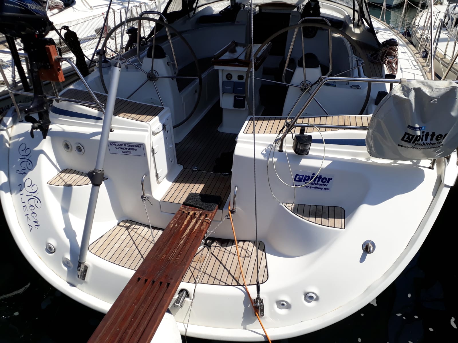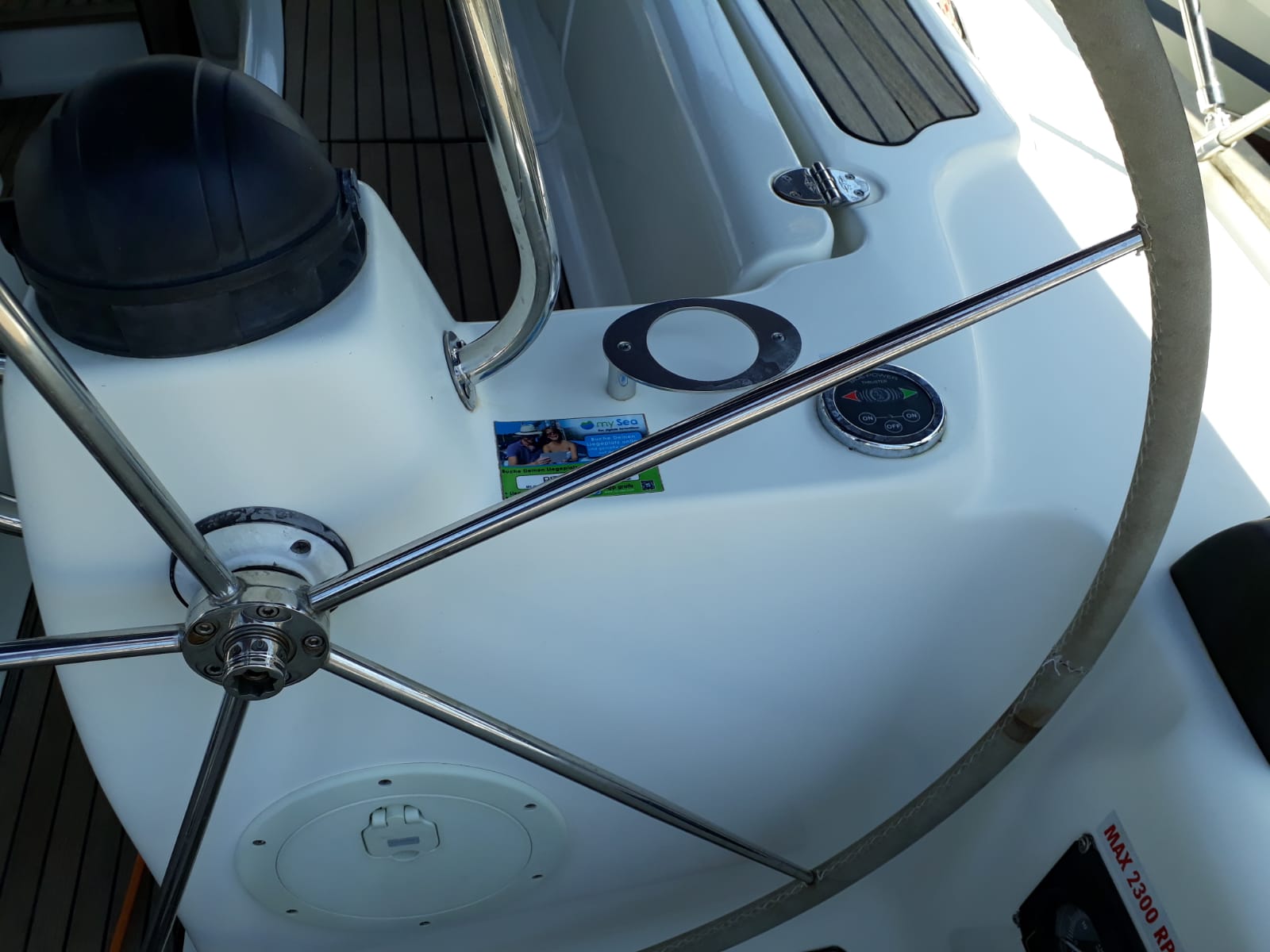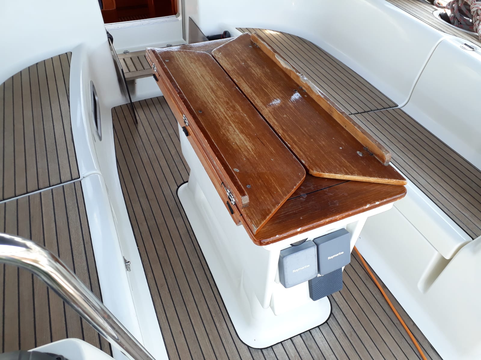 220 V-Landanschluss, Anker mit Kette, Ankerwinsch, Biminitop, Bootshaken, Cockpitdusche, Cockpitlautsprecher, Cockpittisch, Dieselkanister , elektr. Ankerwinsch, Fender, Festmacherleinen, Gangway, Kugelfender, Kunststoff-Eimer (Pütz), Solaranlage, Sprayhood, Teak im Cockpit, Wantenschneider, Wasserkanister , Wasserschlauch, Windex |