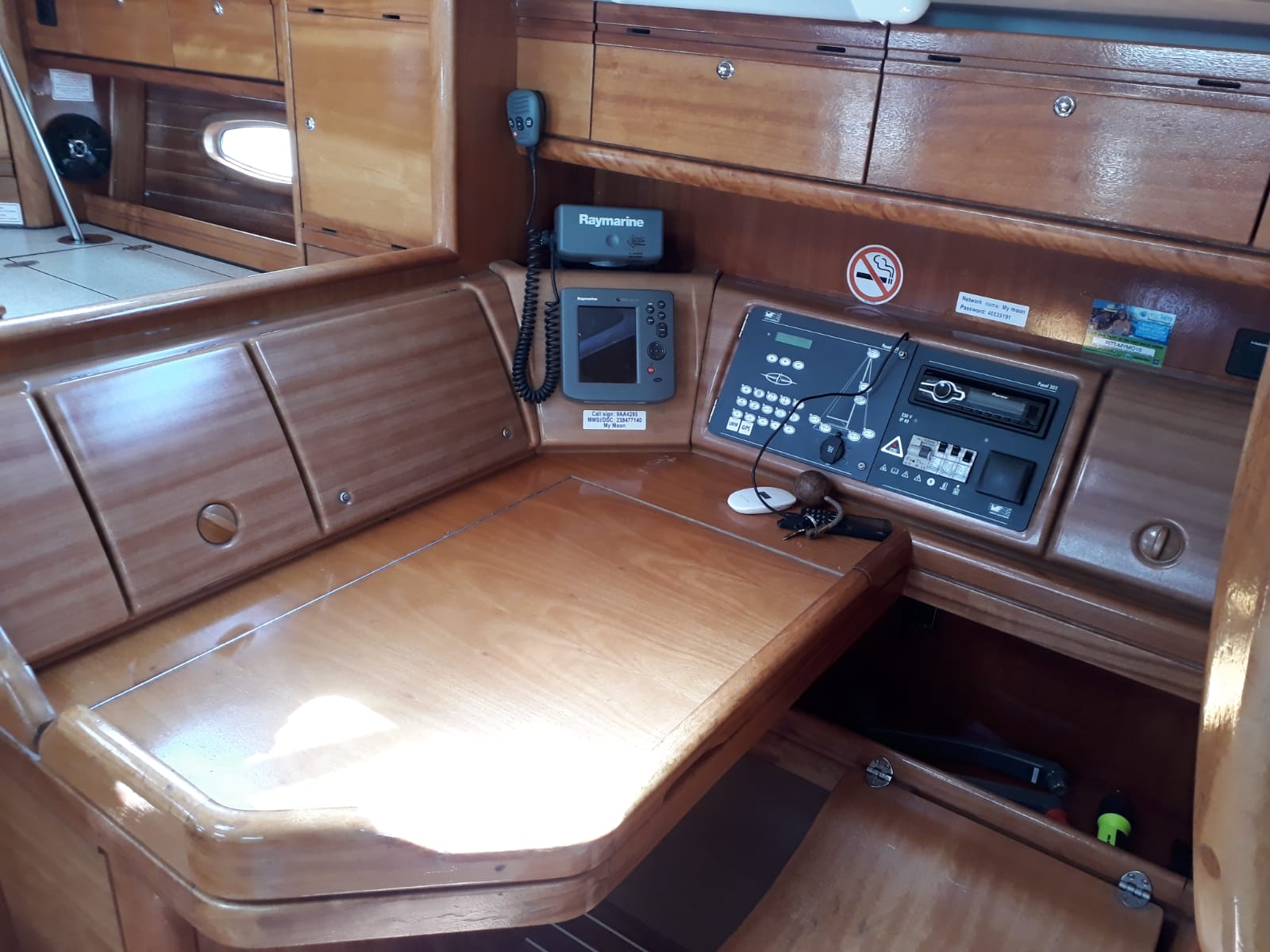 Barometer, Fernglas, GPS mit Kartenplotter im Cockpit, Hafenhandbücher, Handpeilkompass, Navigationsbesteck, Seekarten, Tridata (Log, Echolot, Windm.) |