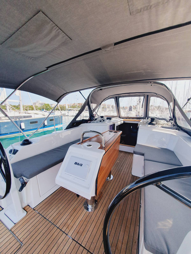 | Safety | Automatikwesten, Autopilot, Blitzboje, Bootsmannstuhl, Bordapotheke, Bordwerkzeug, Bugstrahlruder, Feuerlöscher, Lifebelts, Motor-Ersatzteile, Nebelhorn, Notsignale, Radarreflektor, Reparaturset für Beiboot, Rettungsinsel, Suchscheinwerfer, Taschenlampe, UKW-Funk mit AIS, Zweitanker |