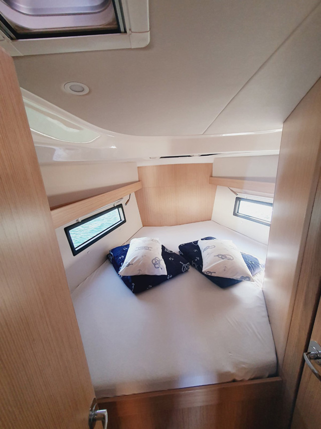 | Inside | Borduhr, FUSION Sound System, Heizung, Inverter 12V/220V, Klimaanlage (Landstrom), Kühlschrank, Ladegerät, Luftpumpe für Beiboot, Pantryausstattung, Radio mit Bluetooth, Salontisch absenkbar, USB Steckdosen in den Kabinen, Warmwasser |