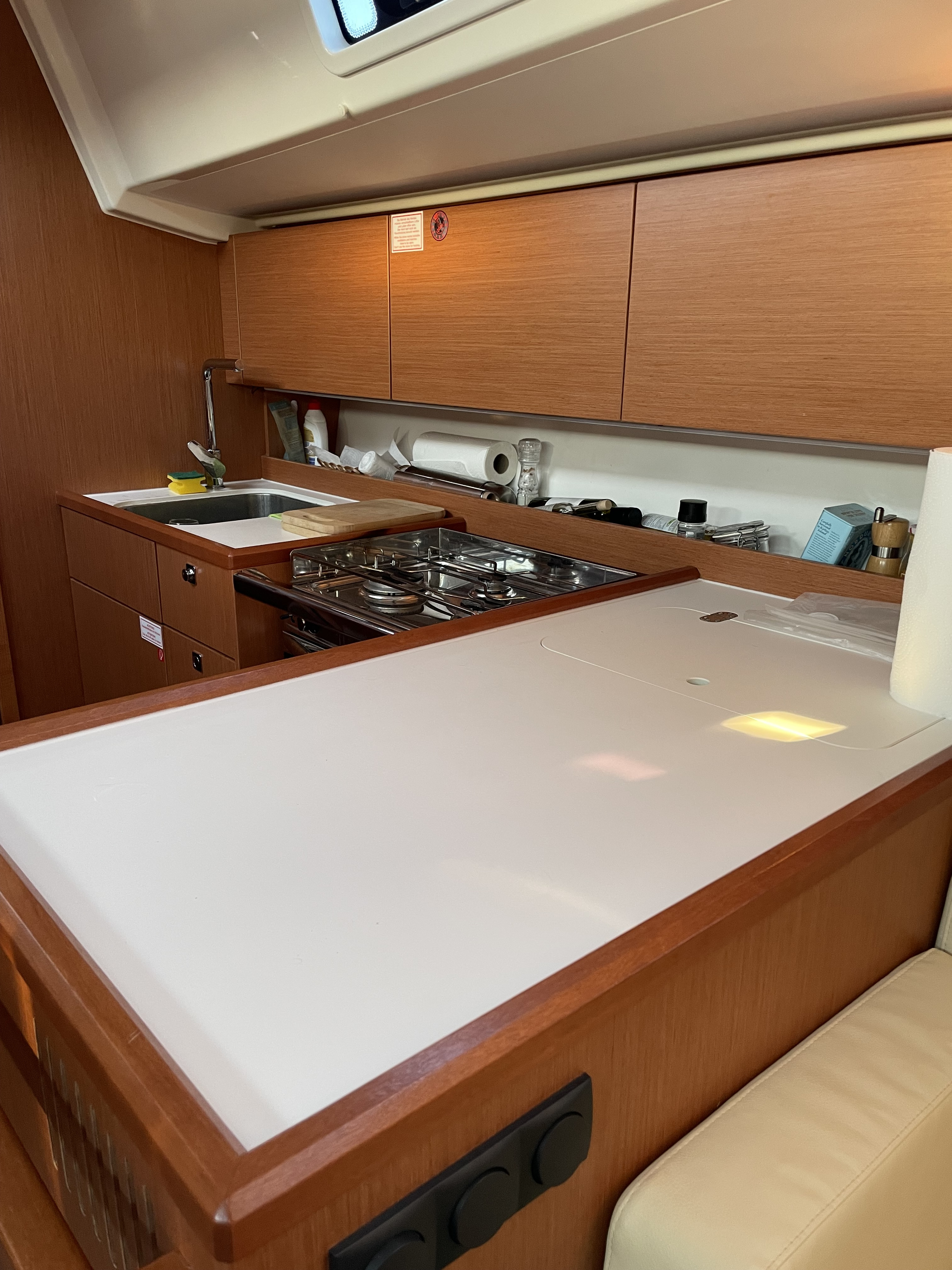 | Safety | AIS Empfänger, Ankerlicht, Automatikwesten, Autopilot, Bootmesser, Bordapotheke, Bugstrahlruder, elektr. Bilgepumpe, Feuerlöscher, Navigationslichter, Nebelhorn, Notpinne, Notsignale, UKW-Funk |