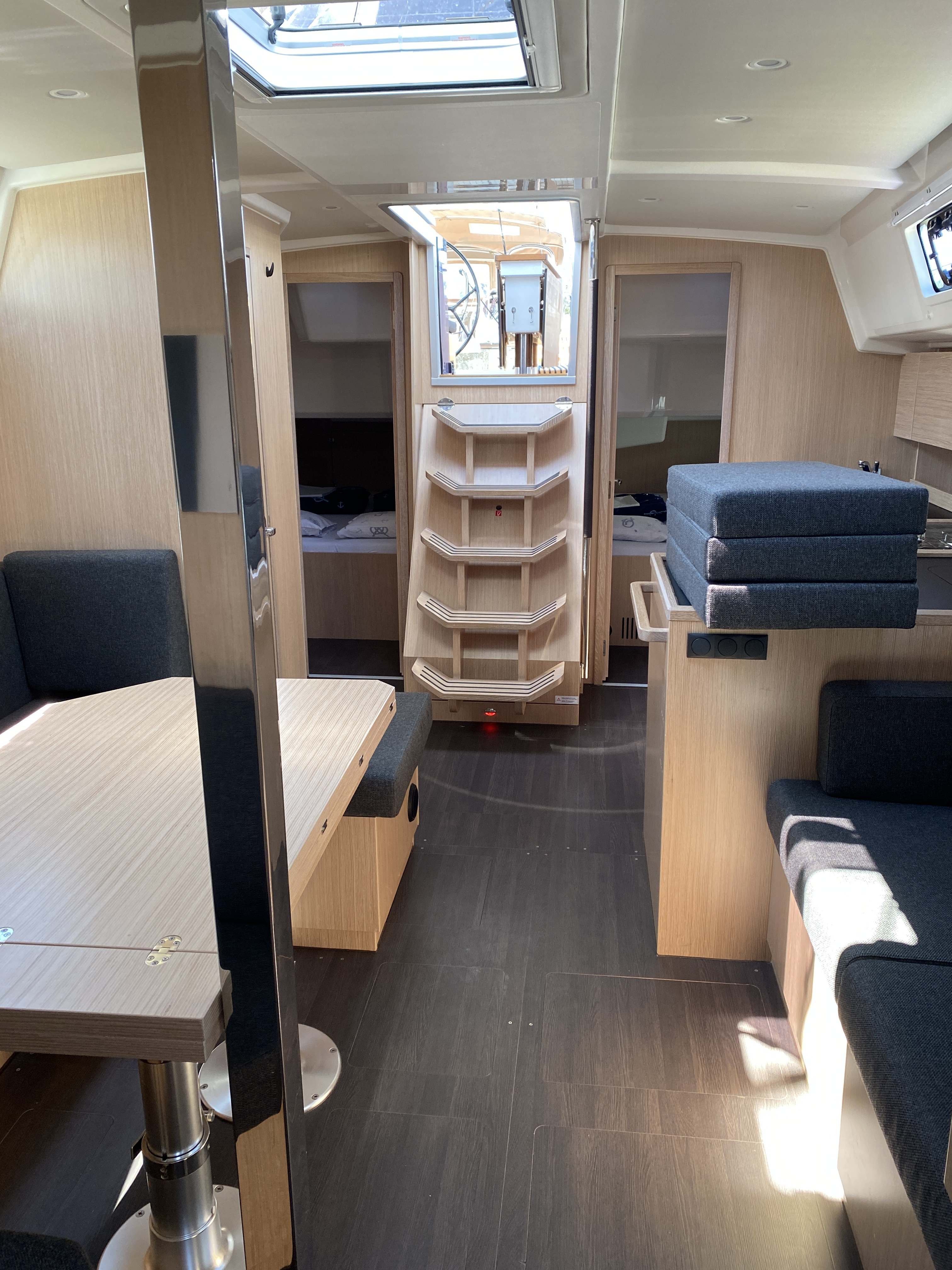 | Safety | Automatikwesten, Autopilot, Blitzboje, Bootsmannstuhl, Bordapotheke, Bordwerkzeug, Bugstrahlruder, Feuerlöscher, Lifebelts, Motor-Ersatzteile, Nebelhorn, Notsignale, Radarreflektor, Reparaturset für Beiboot, Rettungsinsel, Suchscheinwerfer, Taschenlampe, UKW-Funk mit AIS, Zweitanker |