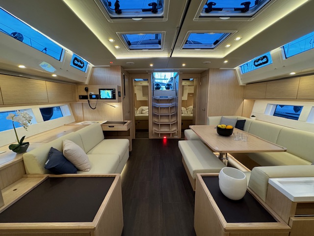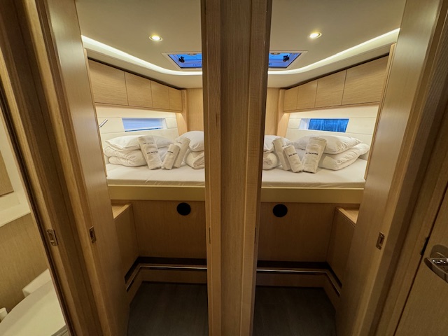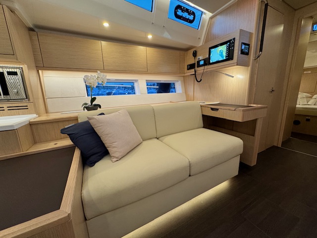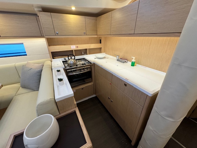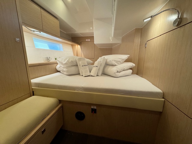 | Inside | 12V/220V-Steckdosen, 2. Kühlschrank, Bluetooth Player, Borduhr, Dusche, Fäkalientank, FUSION Sound System, Gasherd mit Backofen, Generator, Heizung, Kaffeemaschine, Kleiderbügel, Klimaanlage (ohne Landstrombedarf), Kühlschrank, Ladegerät, LCD Fernseher, Luftpumpe für Beiboot, Mikrowelle, MP3-Player, Pantryausstattung, Spülbecken, Warmwasser |