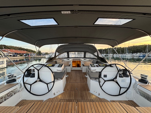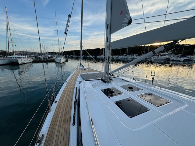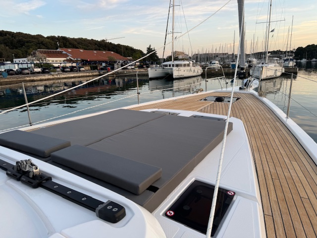| Safety | Autopilot, Blitzboje, Bootsmannstuhl, Bordapotheke, Bordwerkzeug, Bugstrahlruder, elektr. Bilgepumpe, Feststoffschwimmwesten, Feuerlöscher, Flaggen, Handbilgepumpe, Lifebelts, Motor-Ersatzteile, Navigationslichter, Nebelhorn, Notpinne, Notsignale, Radarreflektor, Taschenlampe, UKW-Funk mit AIS, Zweitanker |