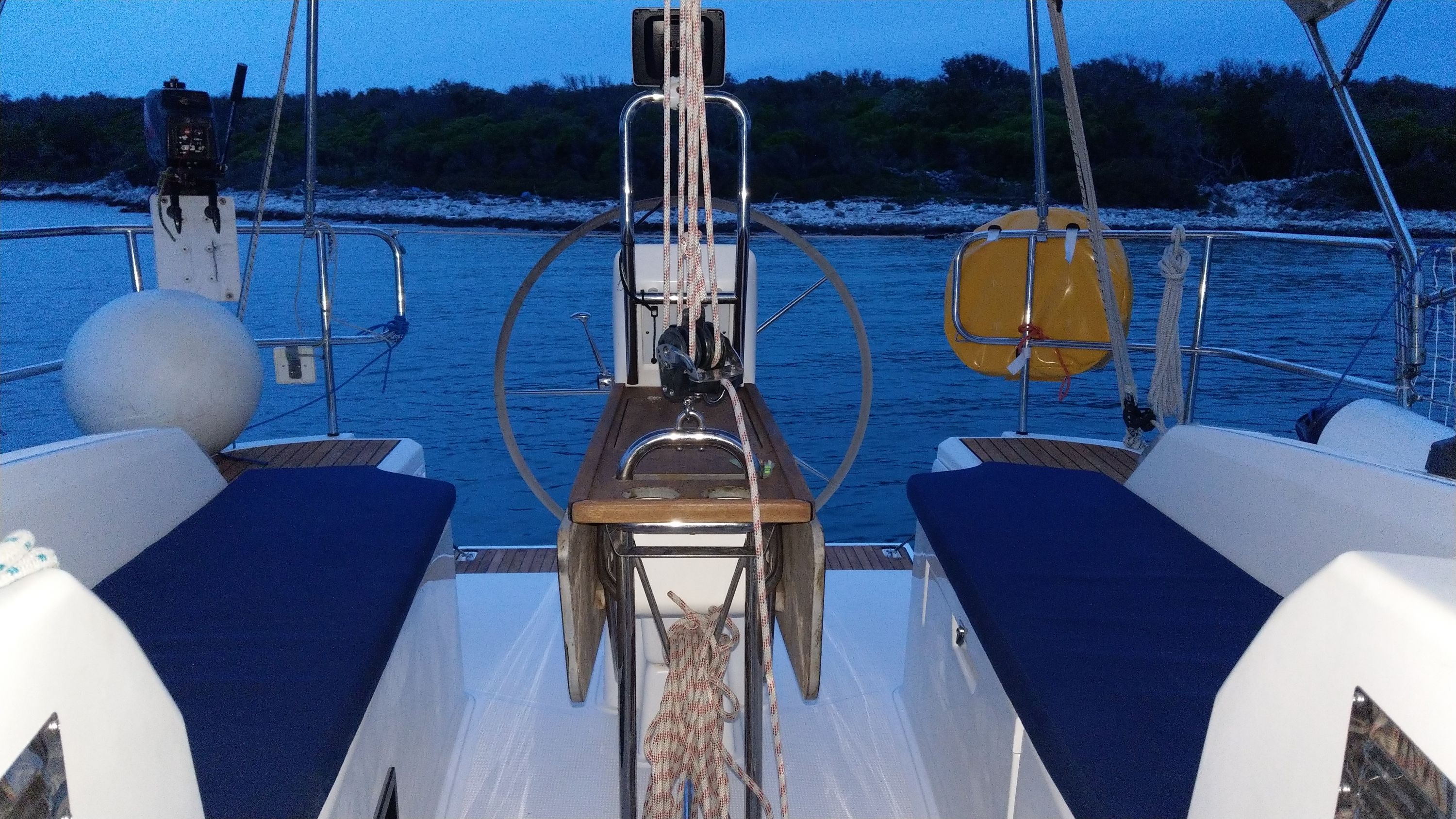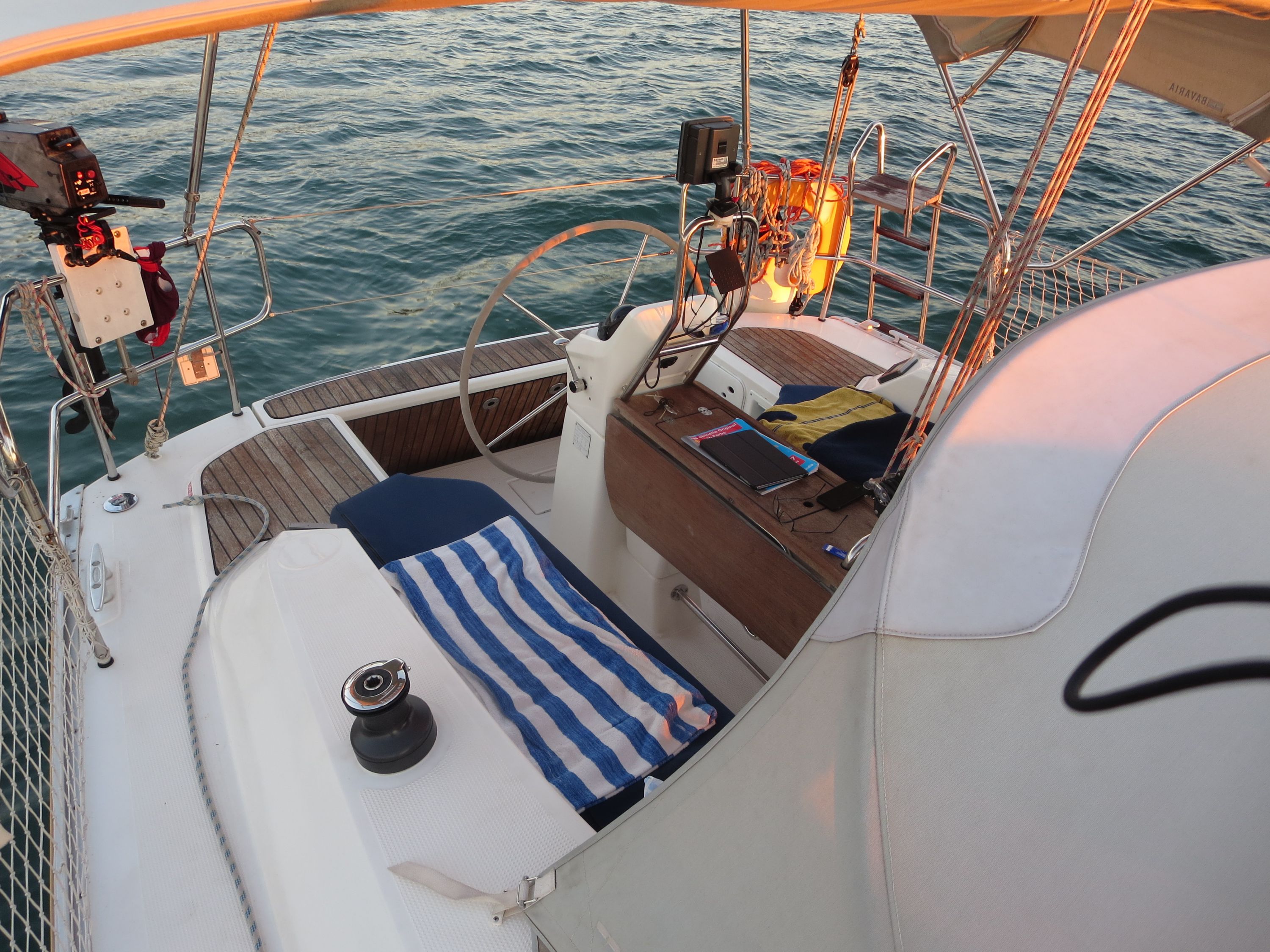 | Outside | Biminitop, Cockpitdusche, Cockpittisch, elektr. Ankerwinsch, Sprayhood |