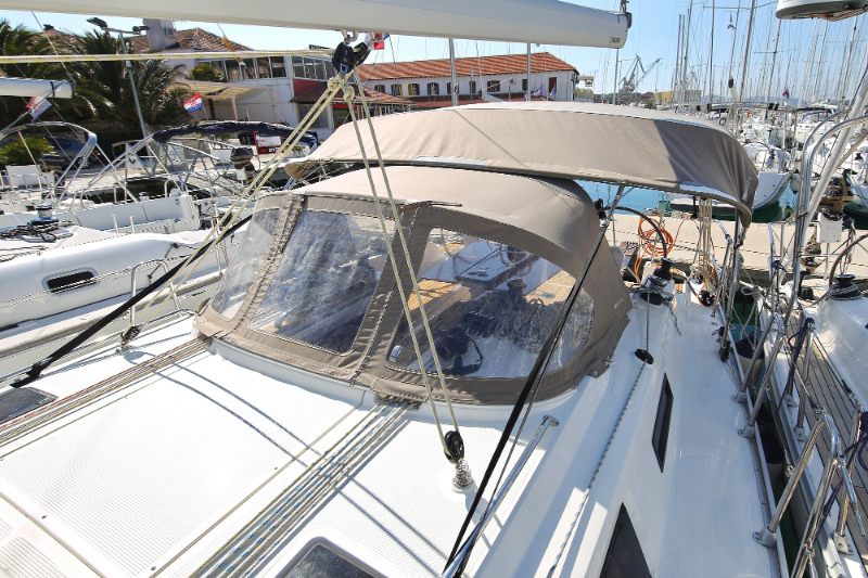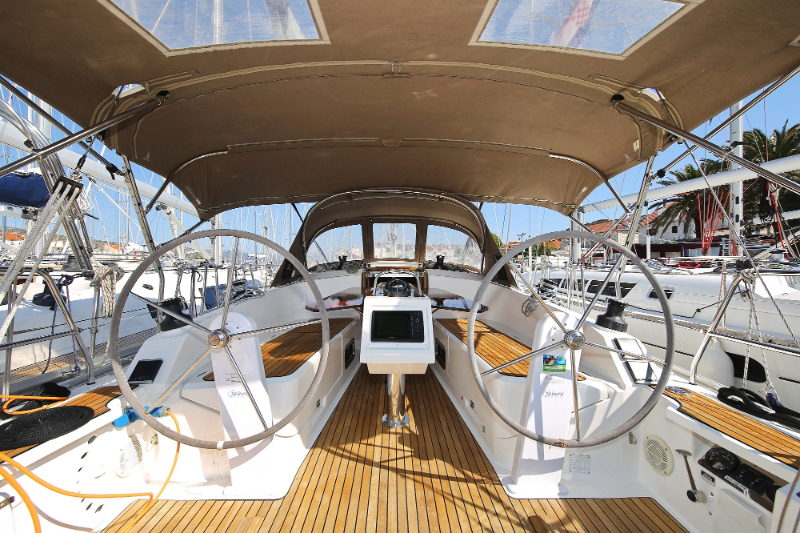 Outside 220 V-Landanschluss, Anker mit Kette, Ankerwinsch, Badeplattform, Biminitop, Bootshaken, Cockpitdusche, Cockpitlautsprecher, Cockpitpolster, Cockpittisch, Dieselkanister , elektr. Ankerwinsch, Fender, Fernsteuerung für elektr. Ankerwinsch, Festmacherleinen, Gangway, Kugelfender, Kunststoff-Eimer (Pütz), Solaranlage, Sprayhood, Teak im Cockpit, Wantenschneider, Wasserkanister , Wasserschlauch, Windex
