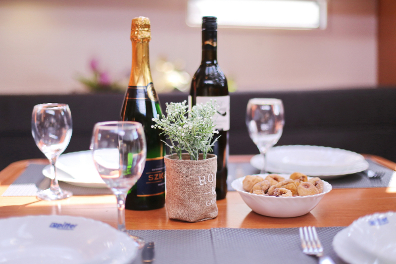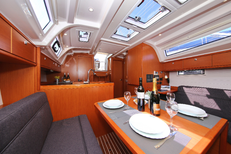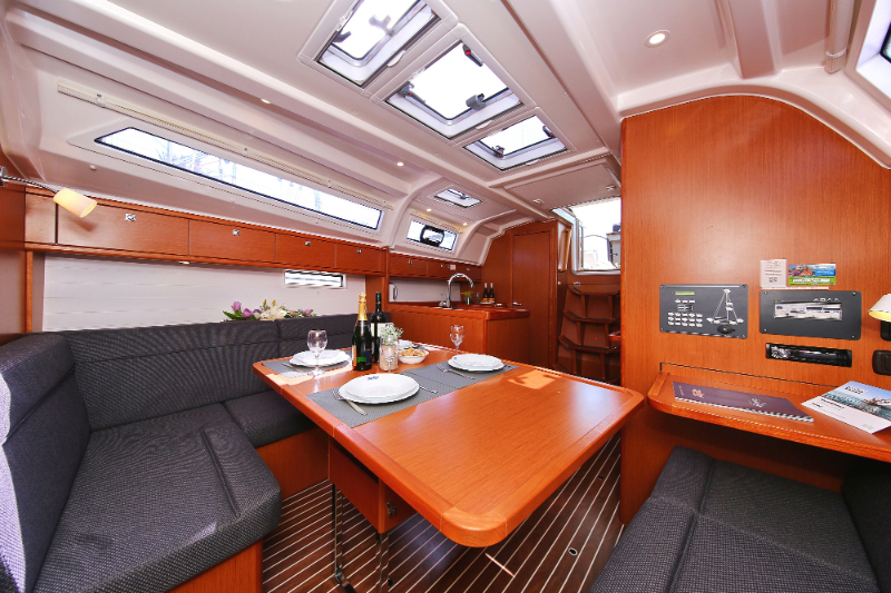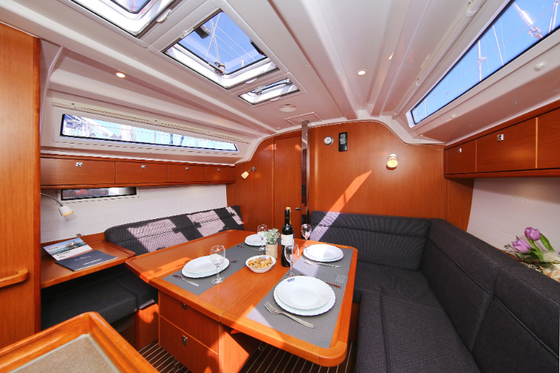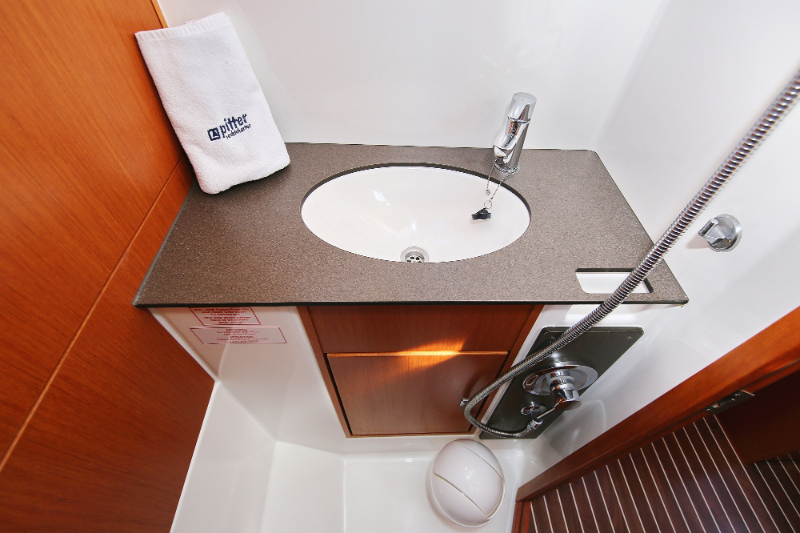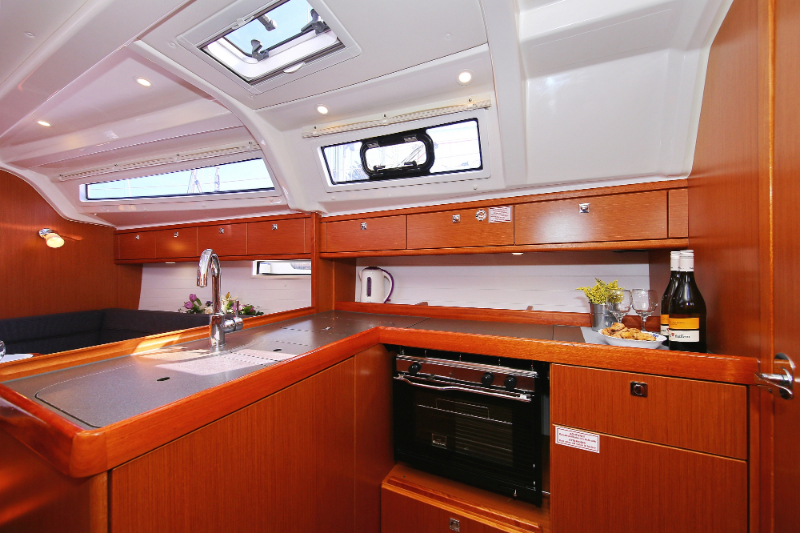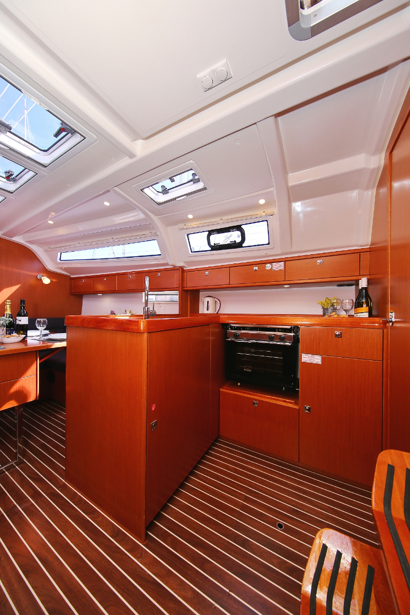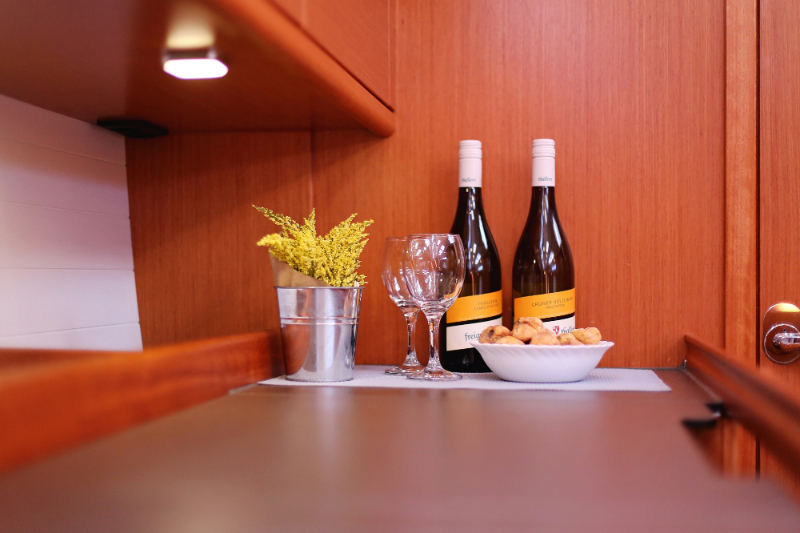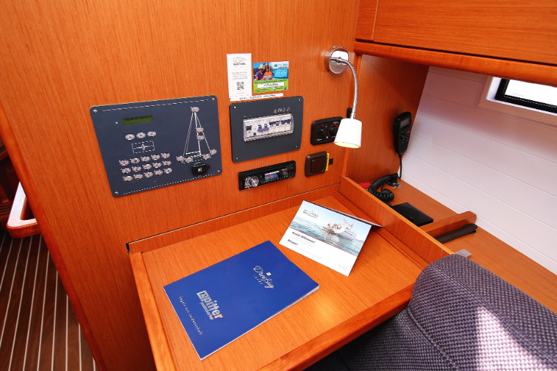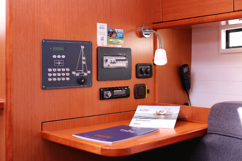 Inside Borduhr, Dusche, Heizung, Inverter 12V/220V, Kühlschrank, Ladegerät, Luftpumpe für Beiboot, Pantryausstattung, Radio mit CD, AUX und USB, USB Steckdose, Warmwasser