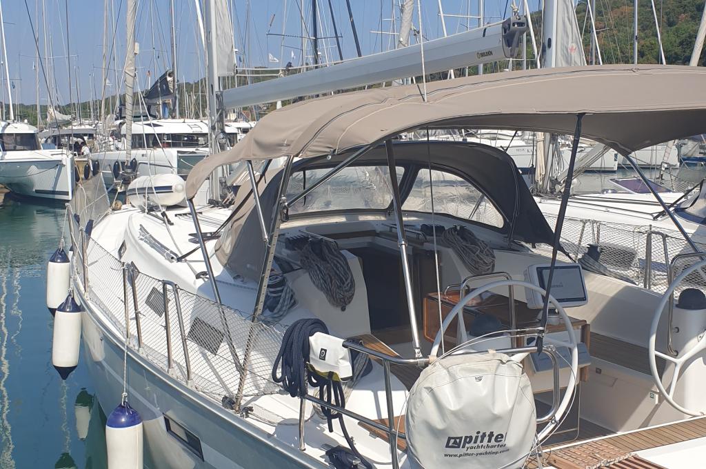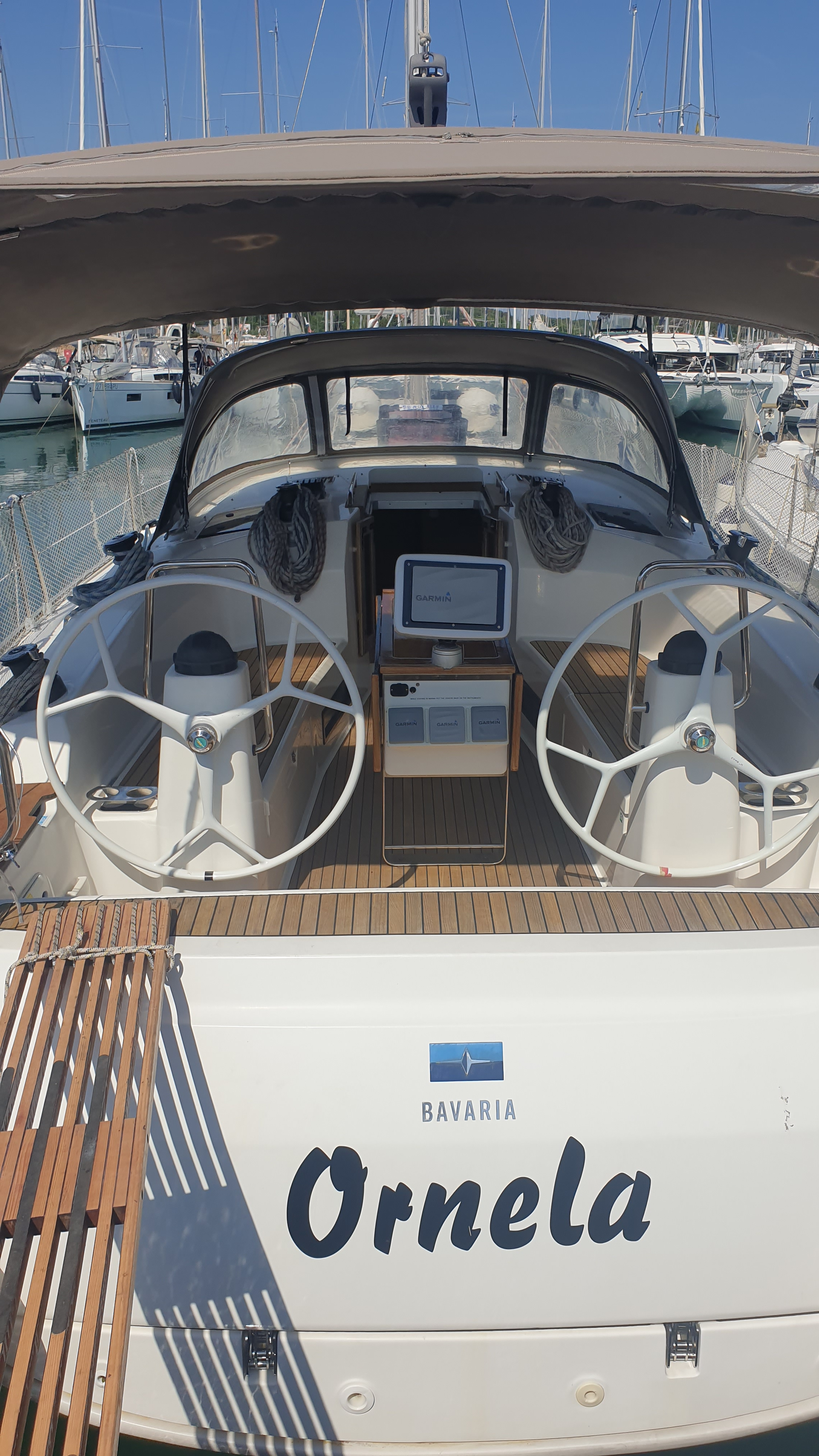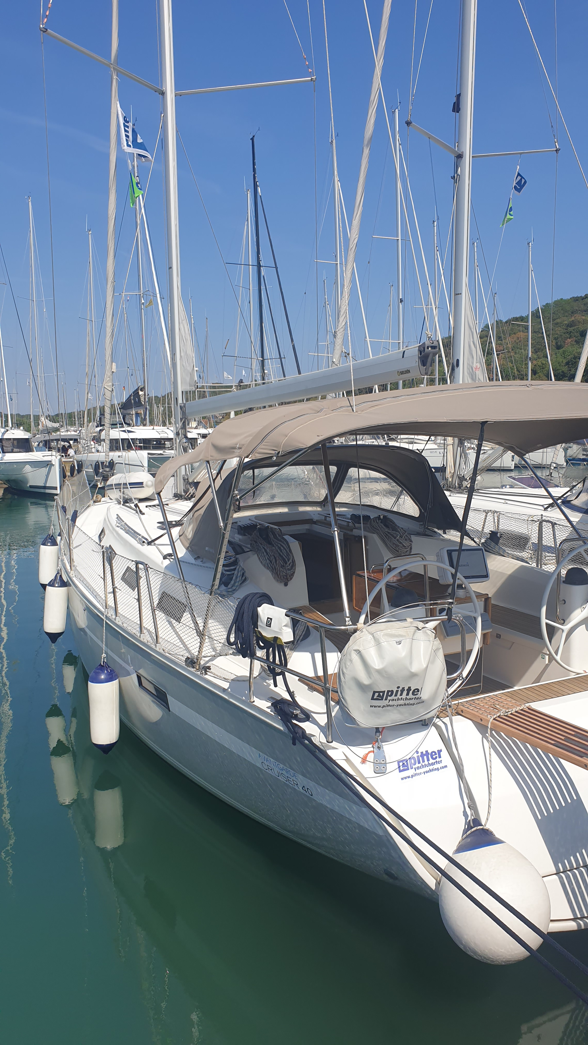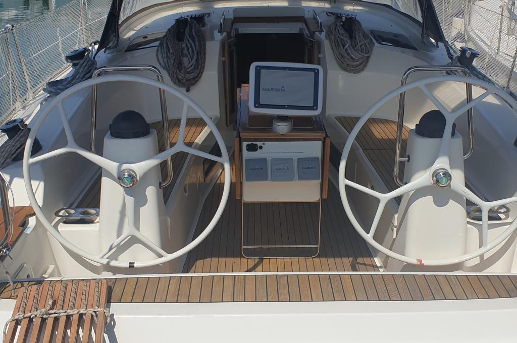 | Outside | 220 V-Landanschluss, Anker mit Kette, Ankerwinsch, Badeplattform, Biminitop, Bootshaken, Cockpitdusche, Cockpitlautsprecher, Cockpitpolster, Cockpittisch, Dieselkanister , elektr. Ankerwinsch, Faltpropeller, Fender, Festmacherleinen, Gangway, Kugelfender, Kunststoff-Eimer (Pütz), Sprayhood, Teak im Cockpit, Wantenschneider, Wasserkanister , Wasserschlauch, Windex |