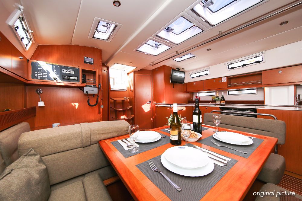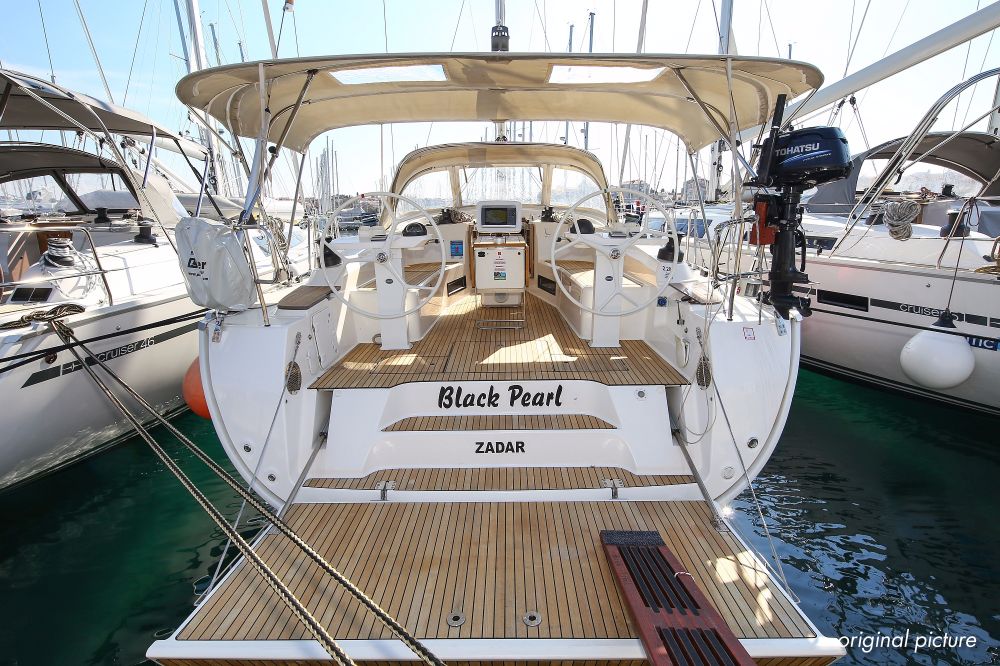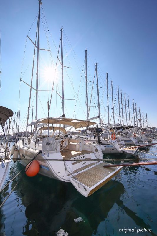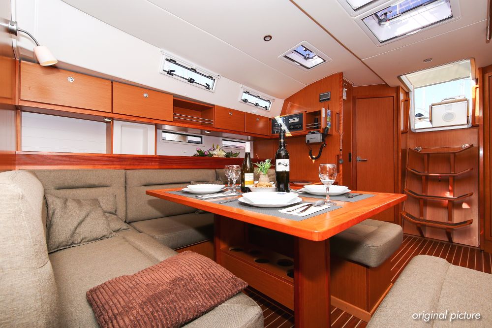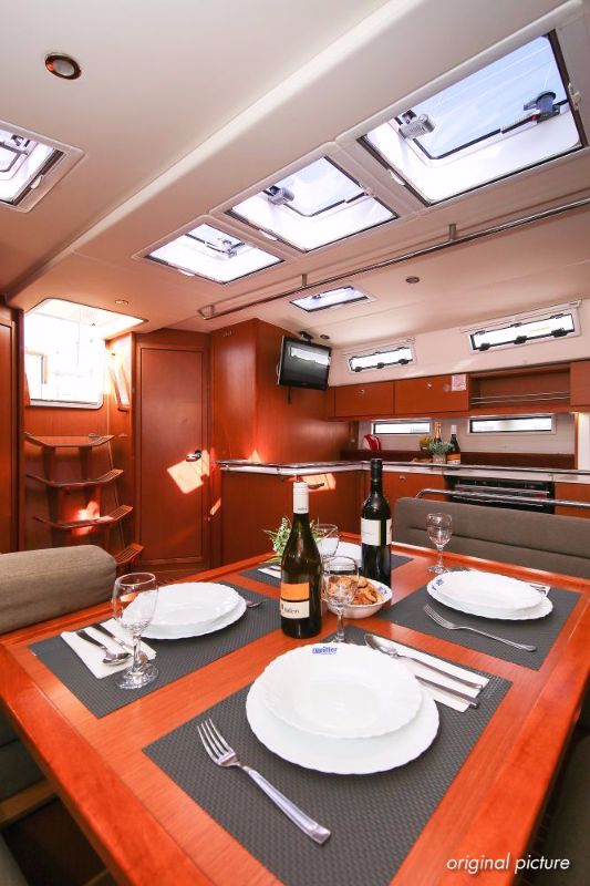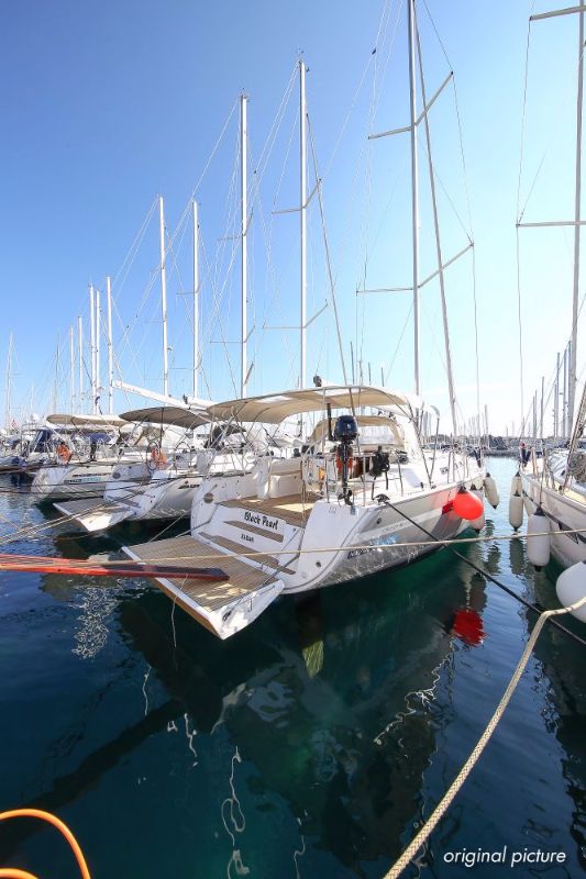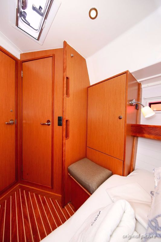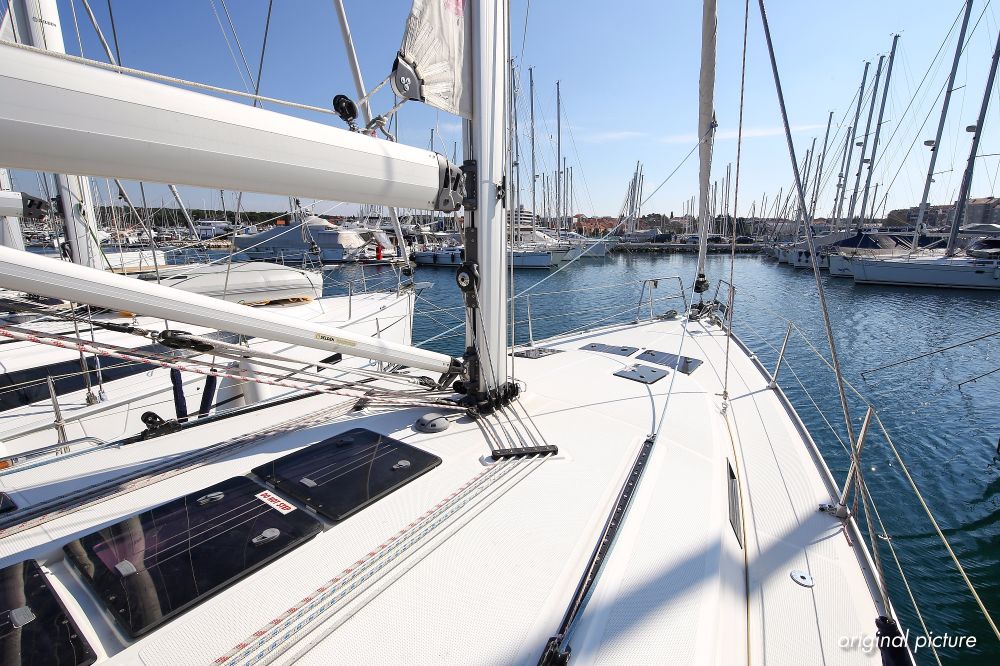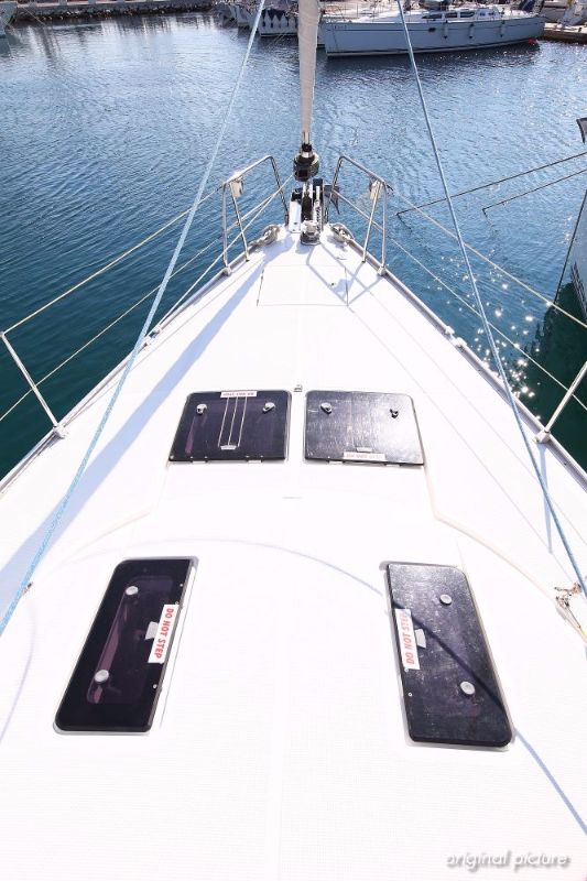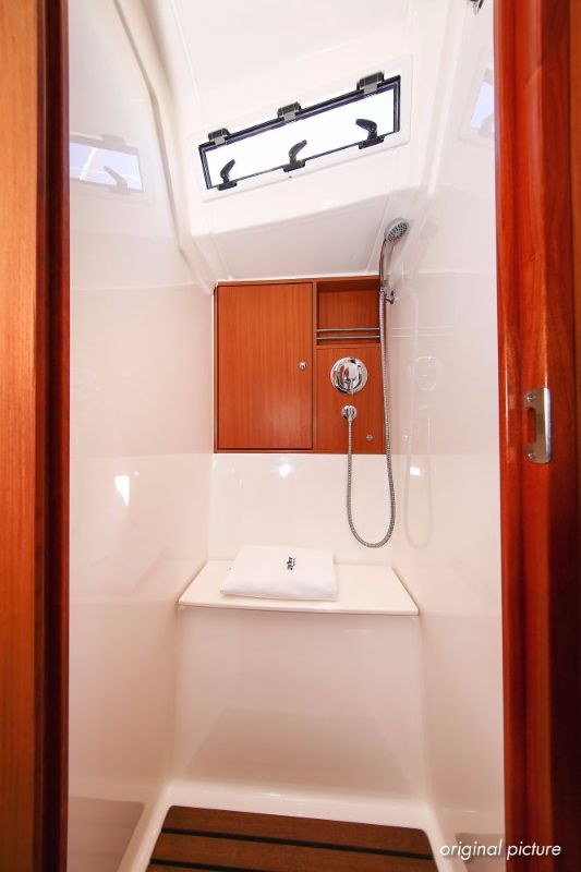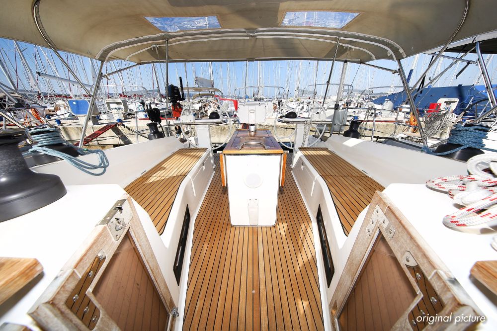 | Outside | 220 V-Landanschluss, Anker mit Kette, Badeplattform, Biminitop, Bootshaken, Cockpitdusche, Cockpitlautsprecher, Cockpitpolster, Cockpittisch, Dieselkanister , elektr. Ankerwinsch, Fender, Festmacherleinen, Gangway, Kugelfender, Kunststoff-Eimer (Pütz), Solaranlage, Sprayhood, Teak im Cockpit, Wantenschneider, Wasserkanister , Wasserschlauch, Windex |