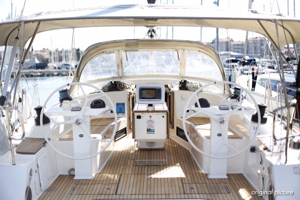 | Navigation | Barometer, Fernglas mit Peilkompass, GPS mit Kartenplotter im Cockpit, Hafenhandbücher, Navigationsbesteck, Seekarten, Tridata (Log, Echolot, Windm.) |
