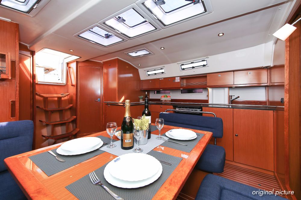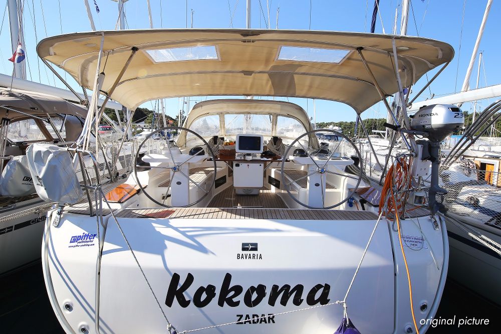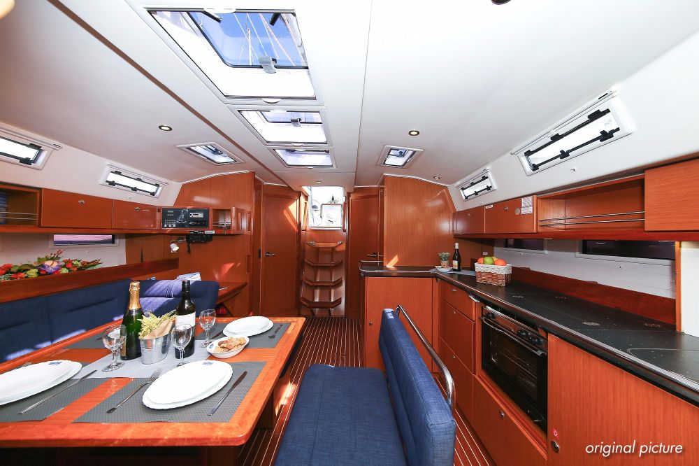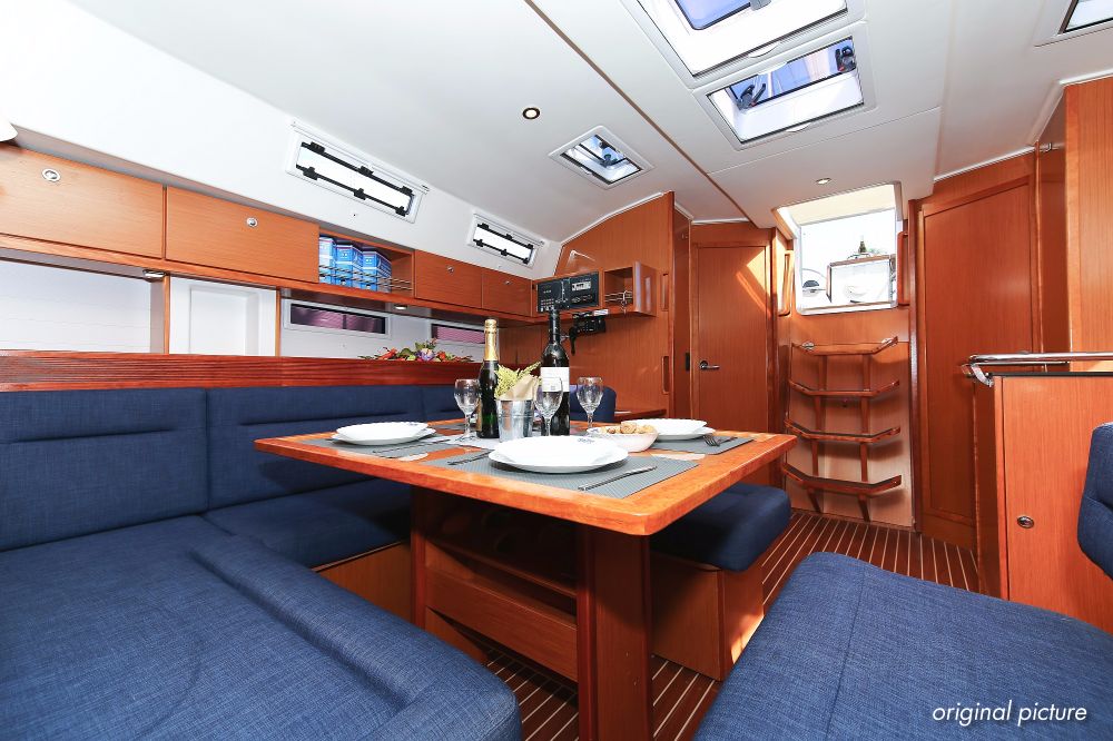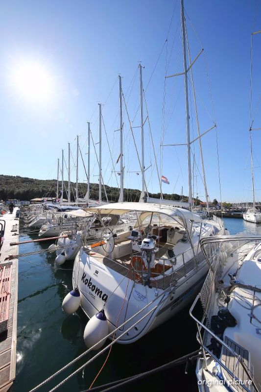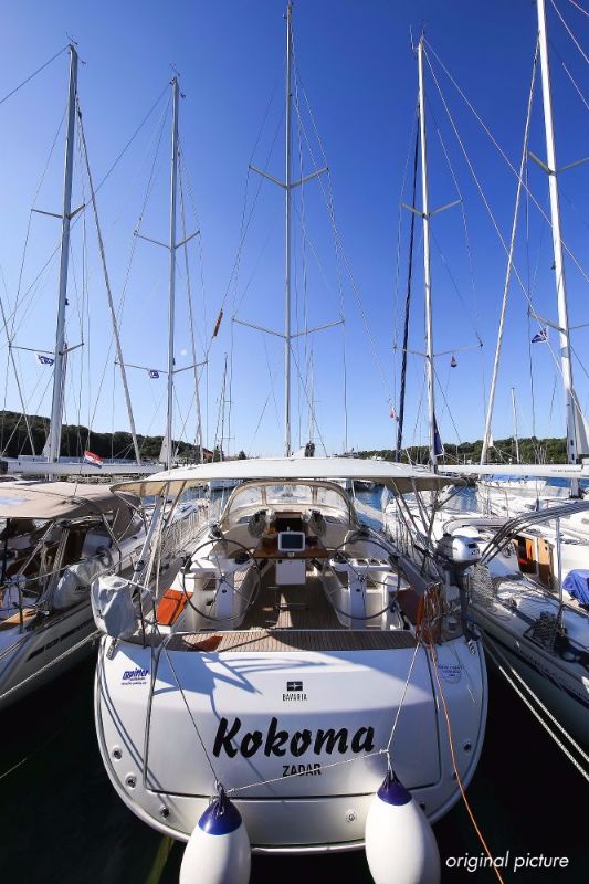 | Navigation | Barometer, Fernglas mit Peilkompass, GPS mit Kartenplotter im Cockpit, Hafenhandbücher, Navigationsbesteck, Seekarten, Tridata (Log, Echolot, Windm.) |