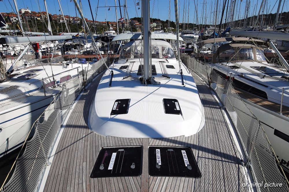 | Safety | Autopilot, Blitzboje, Bootsmannstuhl, Bordapotheke, Bordwerkzeug, Bugstrahlruder, Feststoffschwimmwesten, Feuerlöscher, Lifebelts, Nebelhorn, Notpinne, Notsignale, Radarreflektor, Reparaturset für Beiboot, Rettungsinsel, Suchscheinwerfer, Taschenlampe, UKW-Funk, Zweitanker |