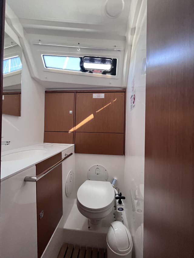 | Navigation | Barometer, Fernglas mit Peilkompass, GPS mit Kartenplotter im Cockpit, Hafenhandbücher, Navigationsbesteck, Seekarten, Tridata (Log, Echolot, Windm.) |