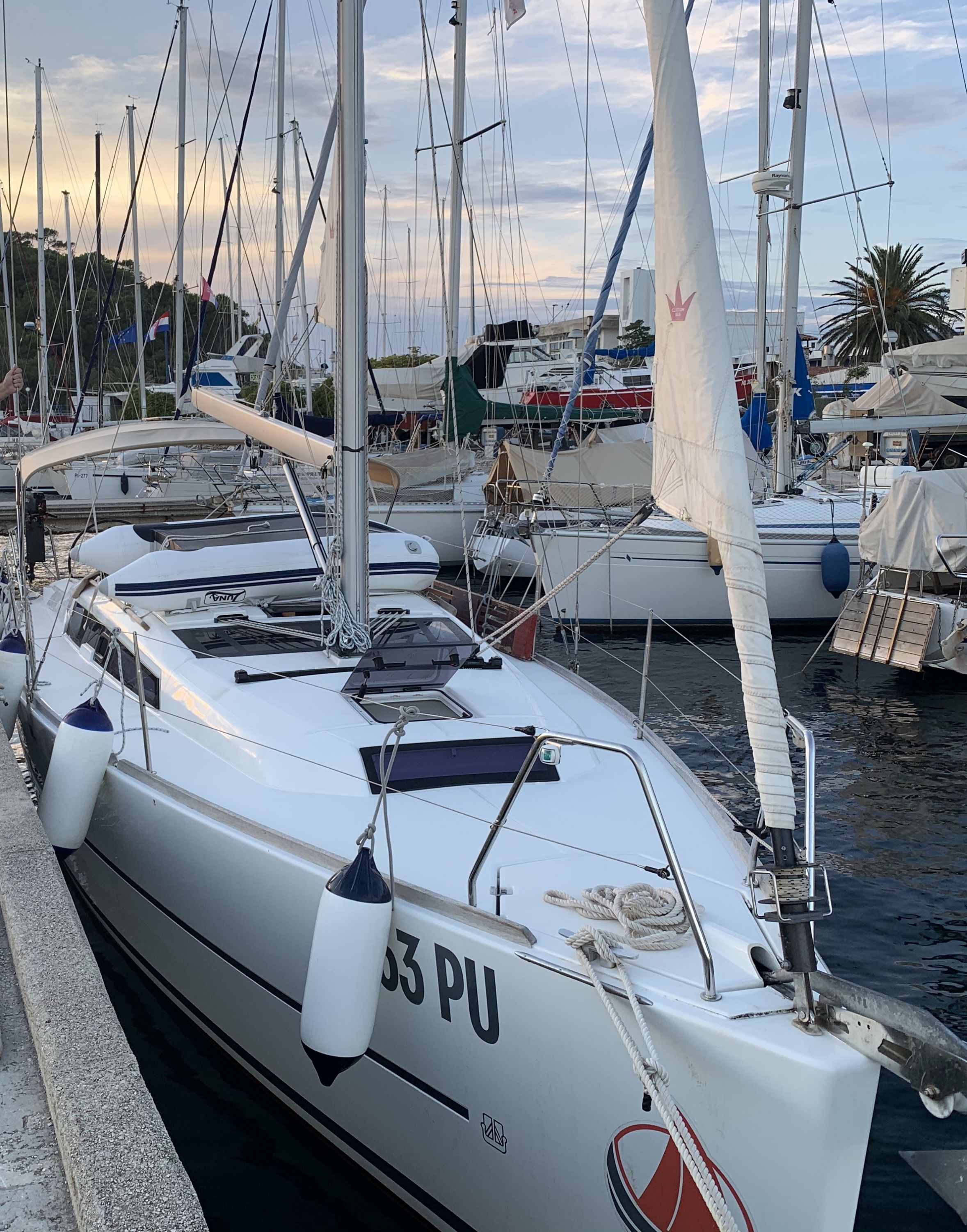 | Safety | Autopilot, Bootsmannstuhl, Bordapotheke, Bordwerkzeug, elektr. Bilgepumpe, Feststoffschwimmwesten, Feuerlöscher, Navigationslichter, Nebelhorn, Notpinne, Notsignale, Radarreflektor, Taschenlampe, UKW-Funk, Zweitanker |