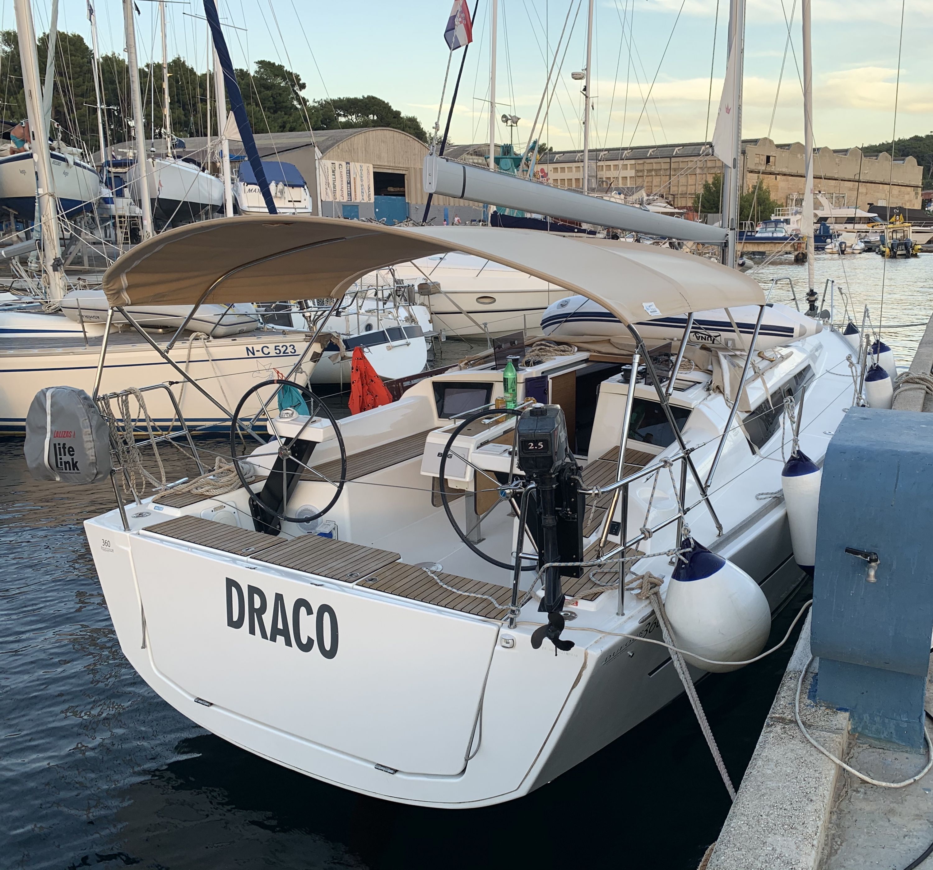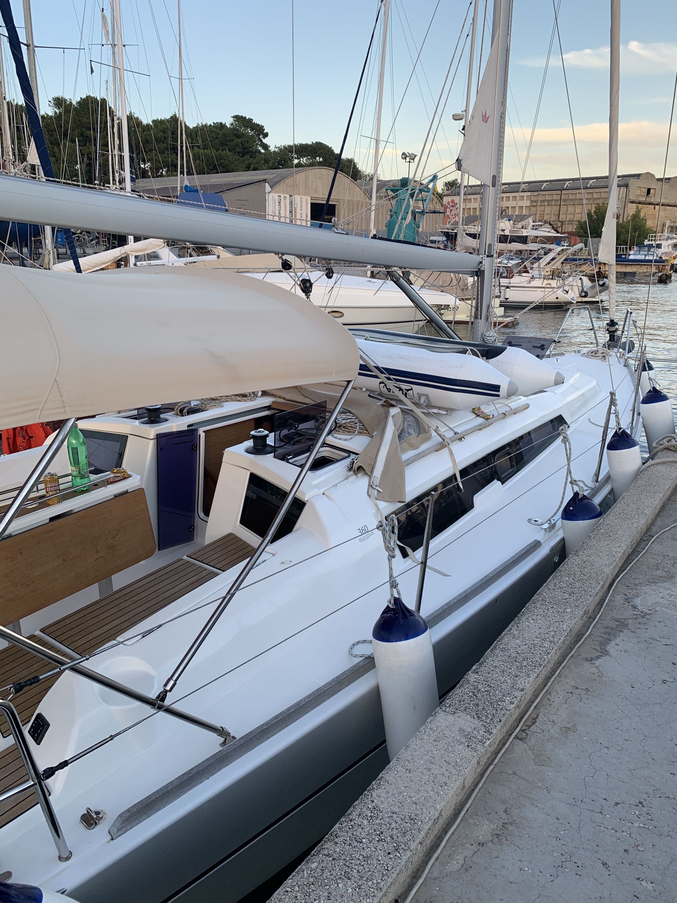 | Outside | Anker mit Kette, Ankerwinsch, Badeplattform, Biminitop, Bootshaken, Cockpitdusche, Cockpitlautsprecher, Deckbürste, Dieselkanister , elektr. Ankerwinsch, Fender, Fernsteuerung für elektr. Ankerwinsch, Gangway, Kunststoff-Eimer (Pütz), Sprayhood, Wasserkanister , Wasserschlauch, Windex |