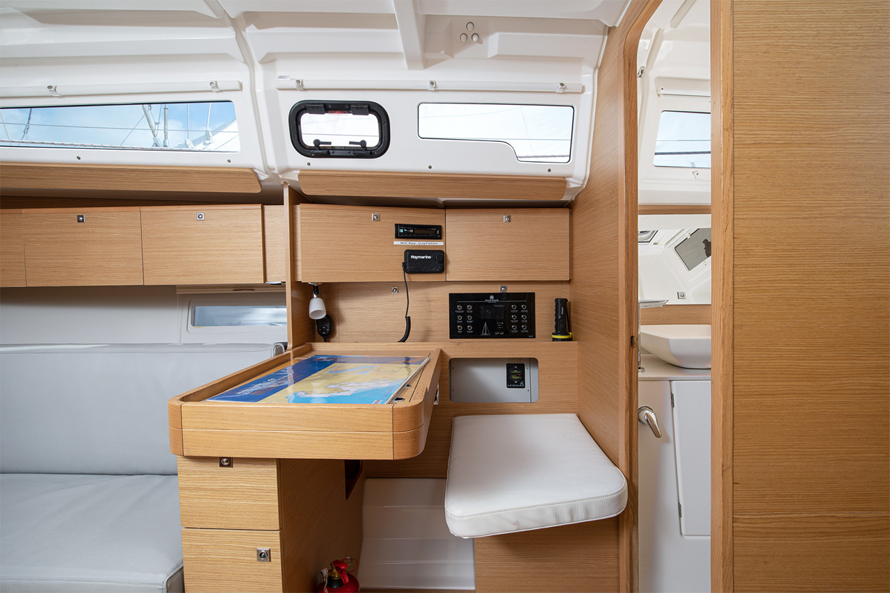 | Navigation | Barometer, Fernglas, GPS mit Kartenplotter im Cockpit, GPS mit Kartenplotter im Salon, Hafenhandbücher, Handpeilkompass, Navigationsbesteck, Seekarten, Tridata (Log, Echolot, Windm.) |