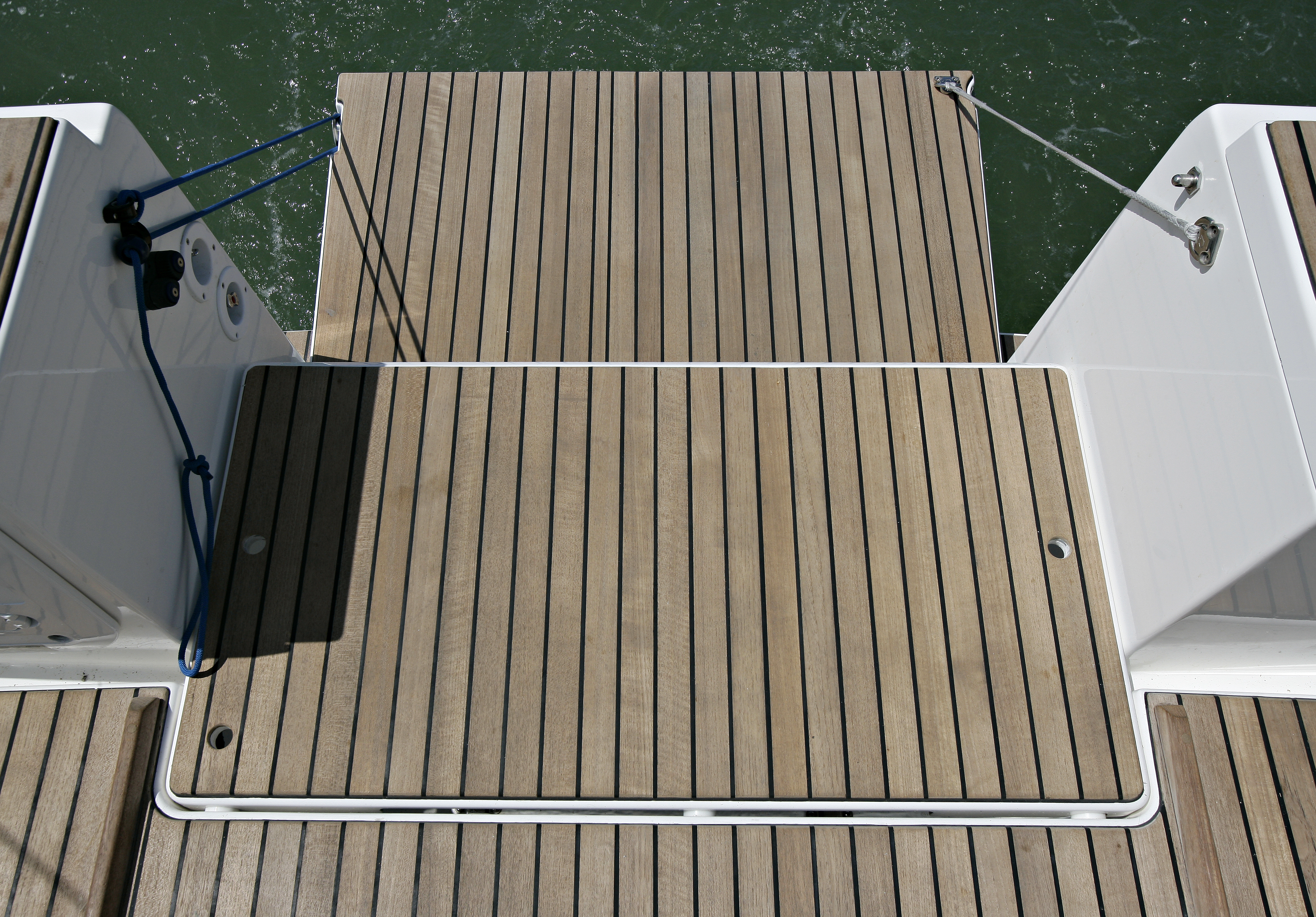 | Outside | 220 V-Landanschluss, Badeplattform, Biminitop, Cockpitdusche, Cockpitlautsprecher, Cockpittisch, Delta-Anker, elektr. Ankerwinsch, Gangway, Solaranlage, Sprayhood |