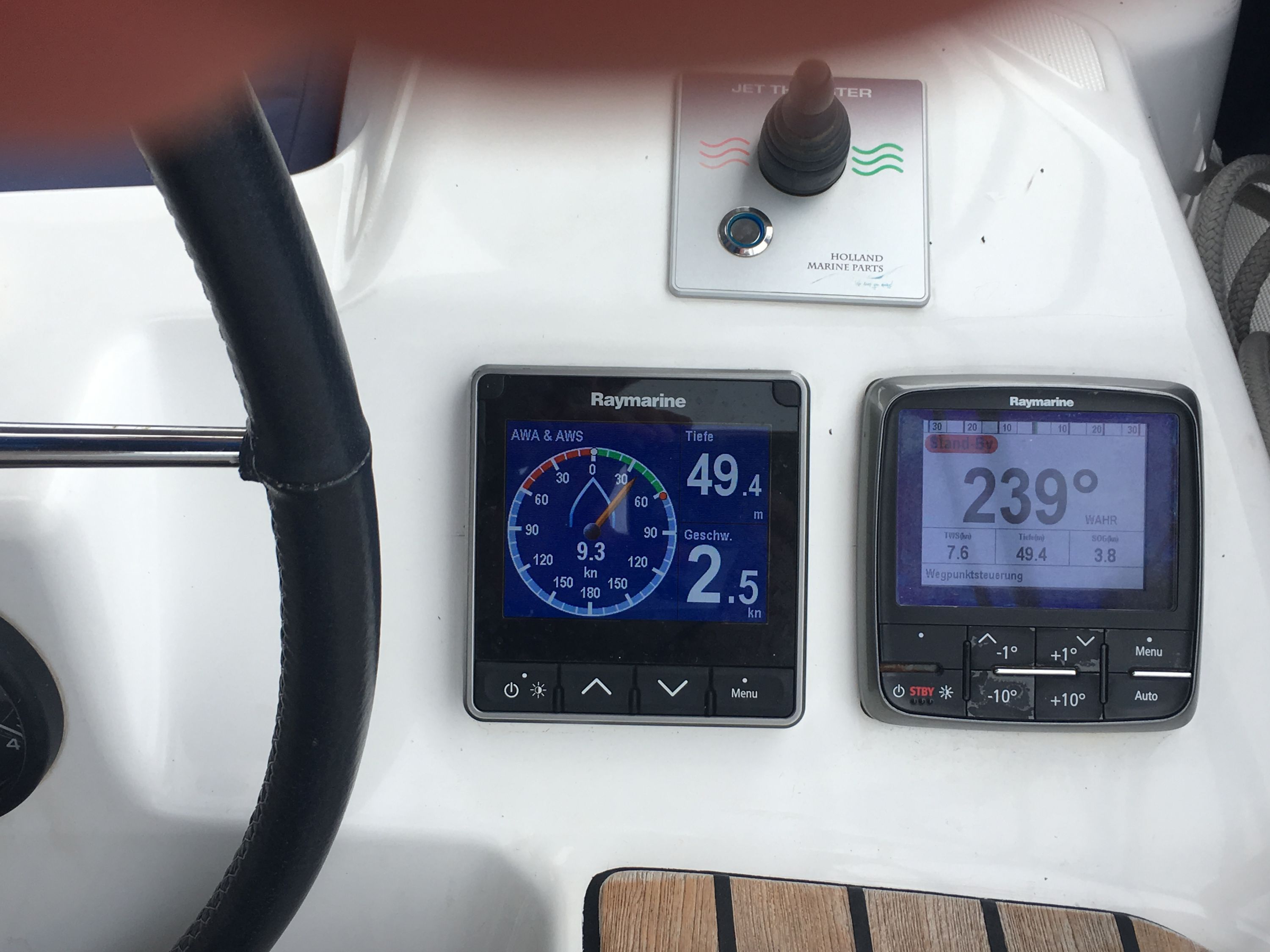 | Navigation | GPS mit Kartenplotter im Cockpit, Kompass, Navigationsbesteck, Seekarten, Sumlog, Windmesser |