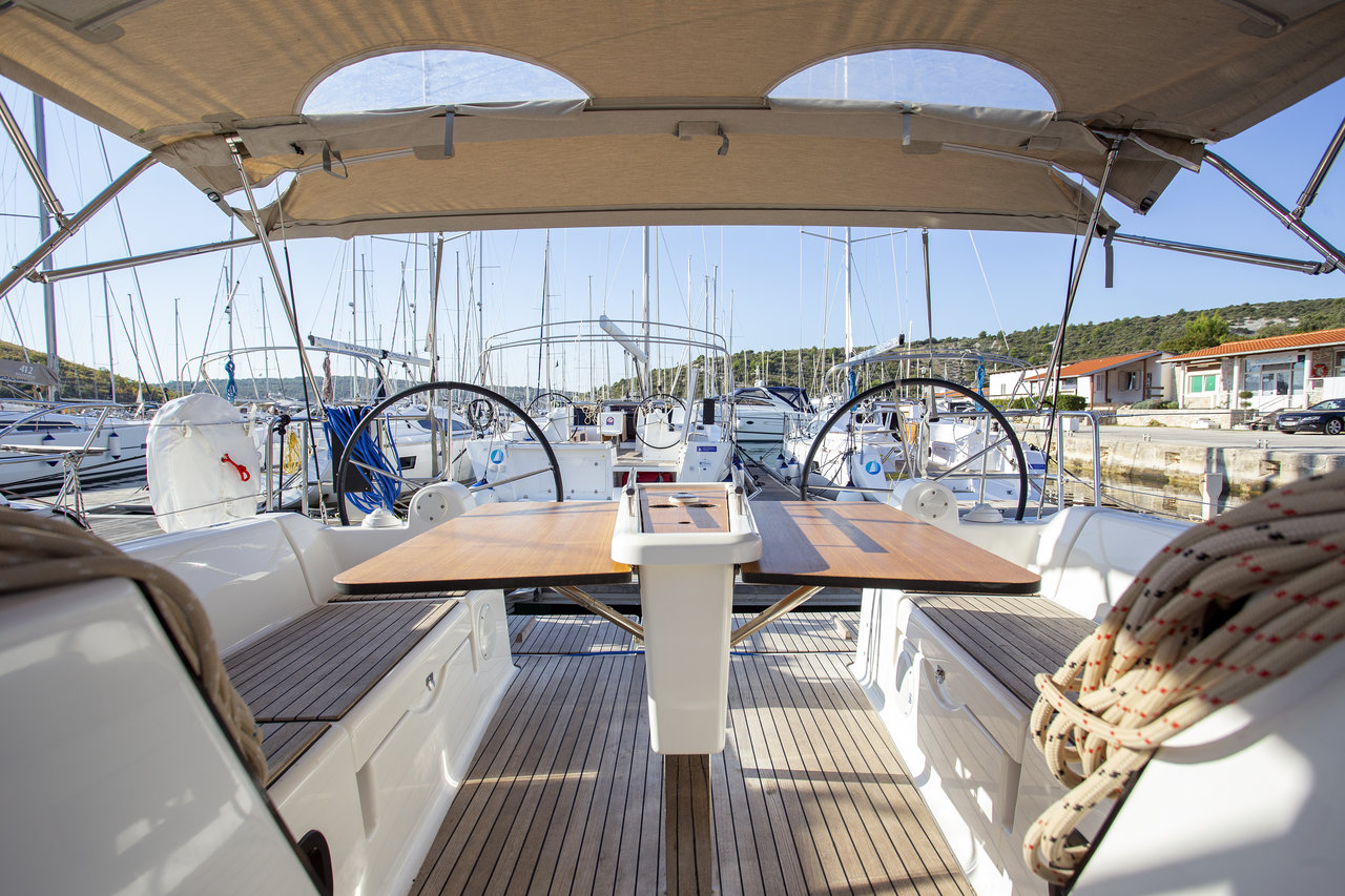 | Outside | Badeplattform, Biminitop, Cockpitdusche, Cockpitlautsprecher, Cockpittisch, elektr. Ankerwinsch, Sprayhood |